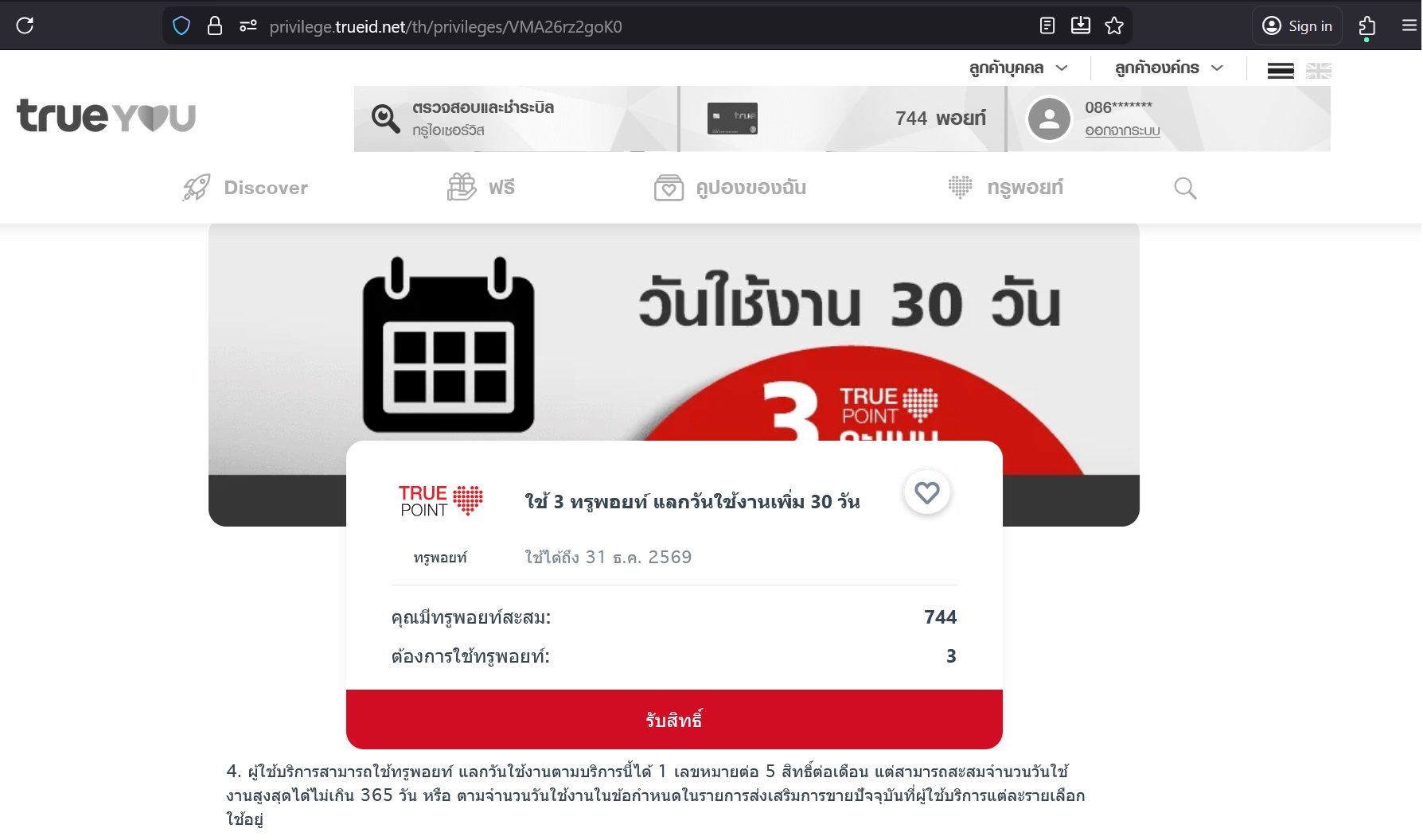 ใช้ 3ทรูพอยท์ แลก 30วัน ไม่ได้ อ้างผู้ใช้สิทธิ์เต็ม ทั้งที่เงื่อนไขบอกให้ 5สิทธิ์ต่อหมายเลข และยังไม่ได้ใช้เลย
