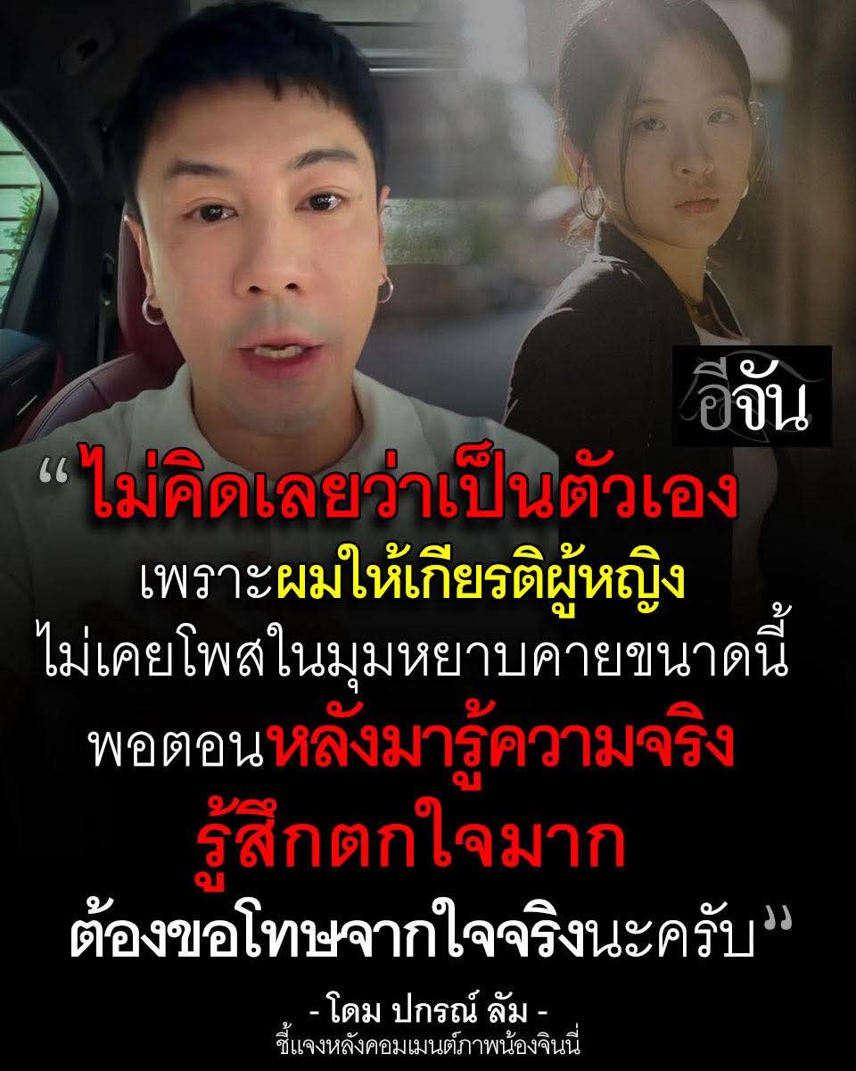 เห็นข่าวโดม ไปโพสใส่น้องจินนี่ ว่าเห็นแล้วกำหนัด ผมว่าแกควรอยู่เฉยๆ คนข้างเตือนบ้างนะ