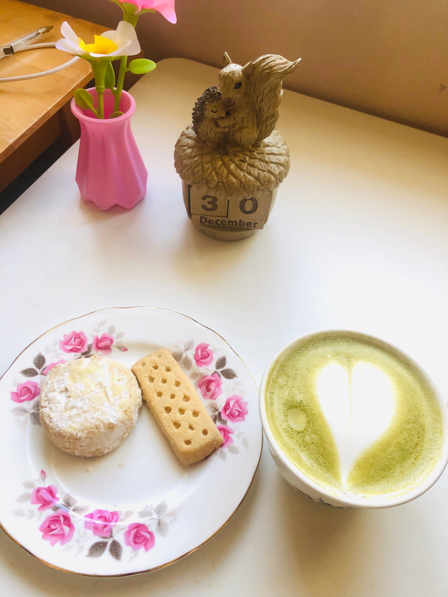 ฟินนนกว่านี้ ไม่มีแล้วค่ะ มัทฉะลาเต้ แกล้ม ด้วย ชอร์ตเบรด 🥰 มัทฉะ สัญชาติไทย ละมุนมากๆค่ะ