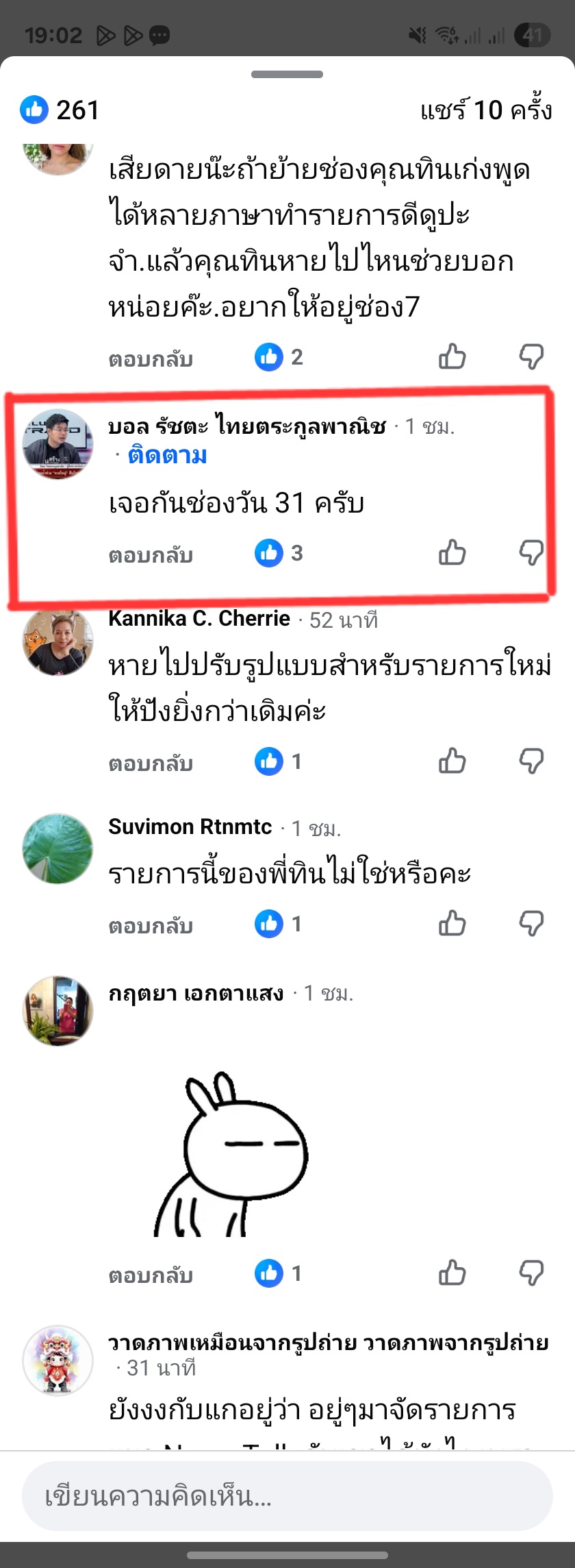 ​​ หลังจากที่ทางเพจถกไม่เถียงโพสต์ให้เป็นที่ข้อสงสัยกันอยู่สักแป๊บนึงว่า คุณทินไปไหนล่าสุดได้มี comment นึงของคุณ "บอล รัชตะ  ไทยตระกูลพานิช " ซึ่งเป็นผู้สื่อข่าวภาคสนามหลักของช่อง one31 ได้ออกมาบอกแล้วว่า คุณ "ทิน โชคกลมกิจ" จะย้ายมาช่อง one31 แน่นอน​