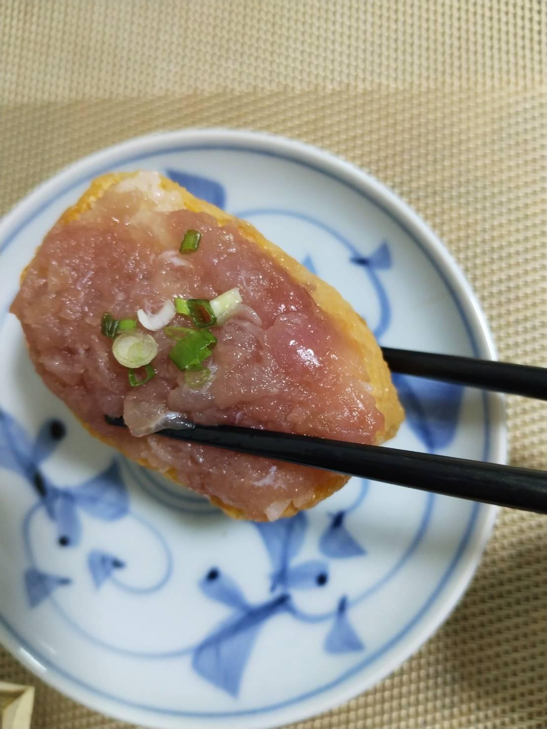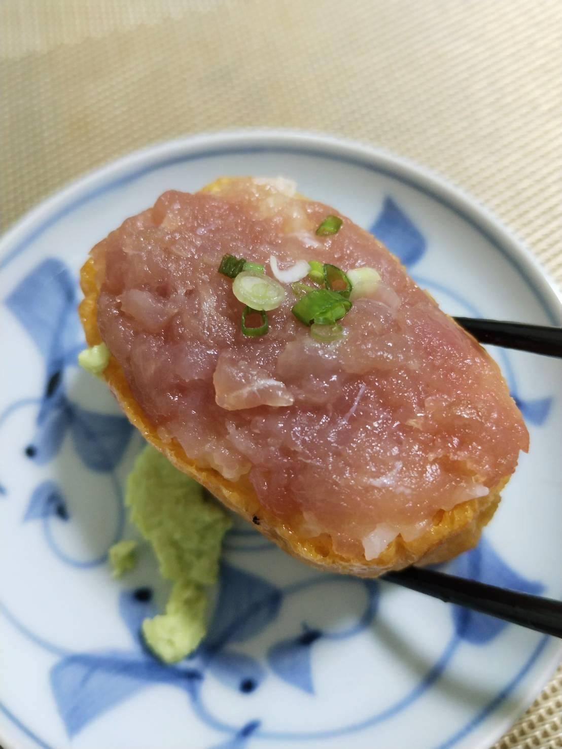 อินาริซูชิ แต่ท็อปปิ้งเป็น เนงิโทโร่ อร่อยกำลังดี ข้าวเยอะมาก