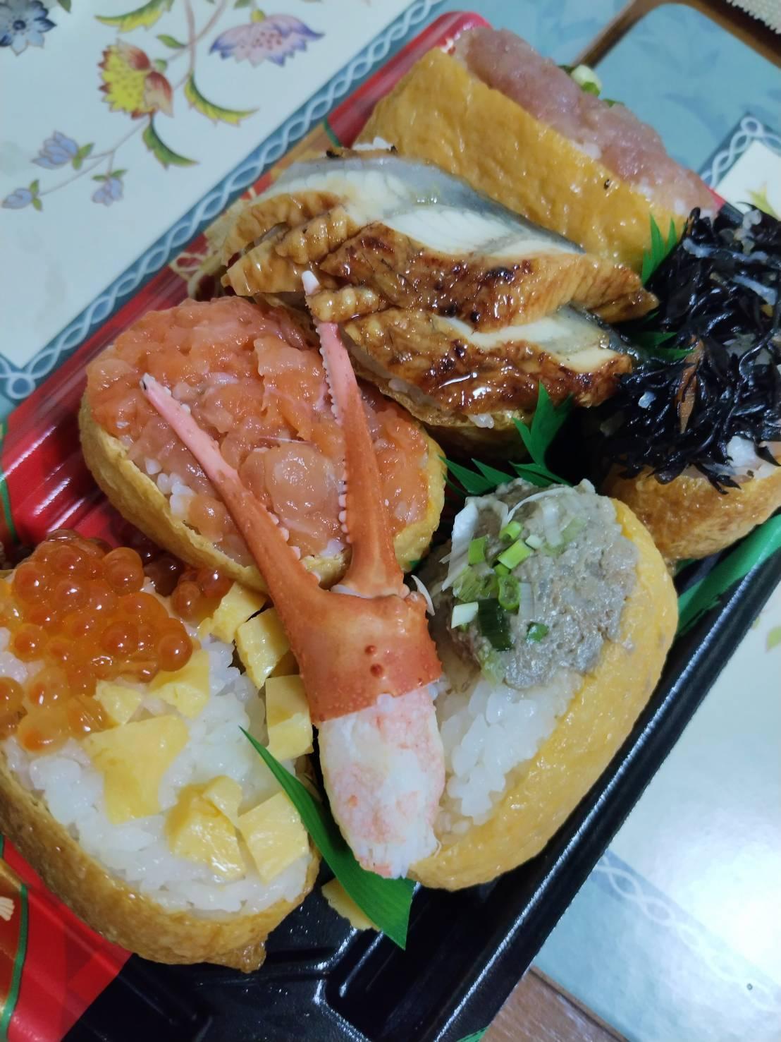 ในชุดเบนโตะ มีมันปูก้ามปู🦀 ไข่ปลาแซลมอนอิคุระ ปลาแซลมอนหั่น สาหร่ายดำฮิจิกิ ปลาไหลอุนางิ