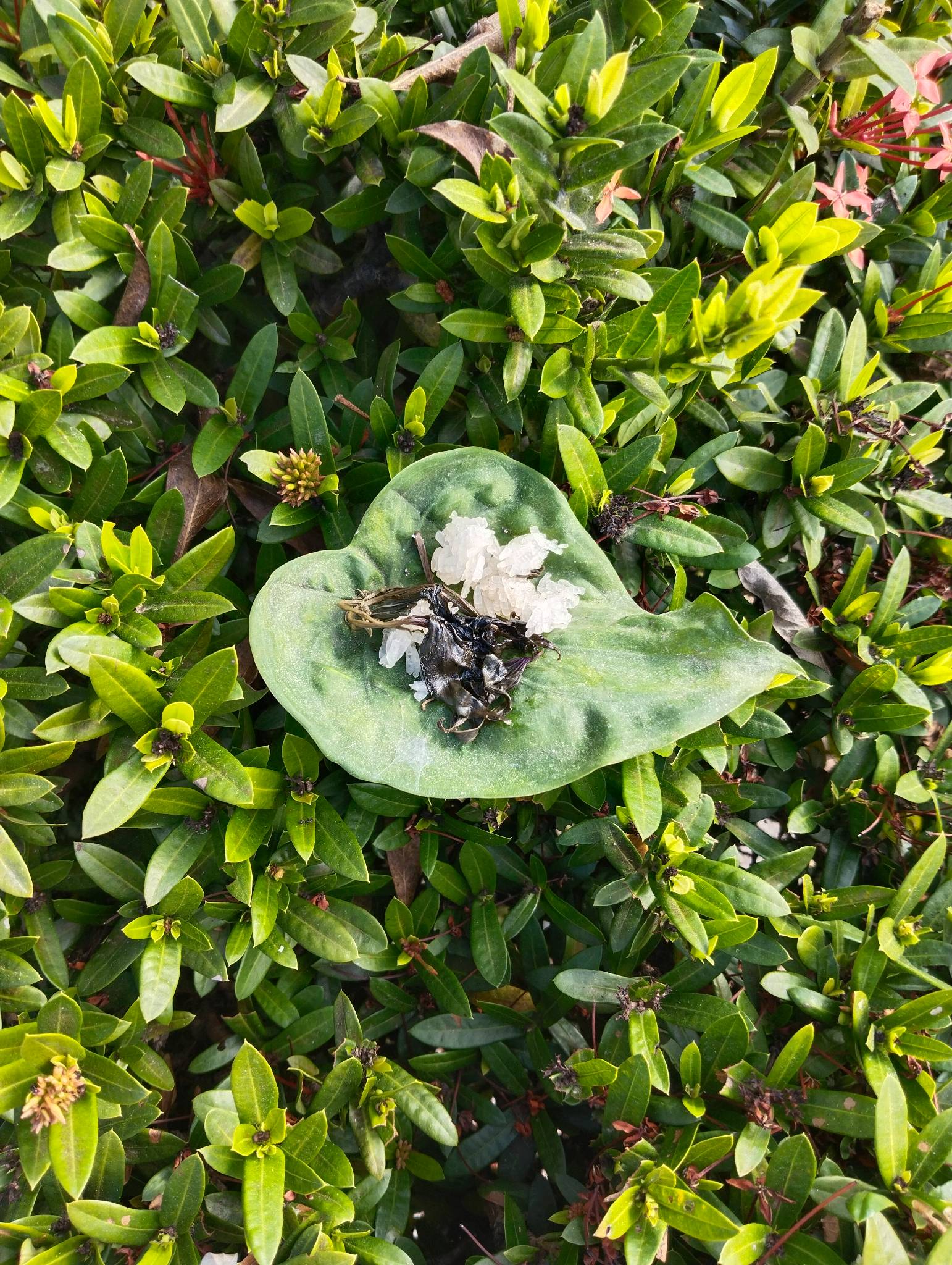 มีคนเหมือนทำของอะไรบางอย่าง ซึ่งวางไว้หน้าบ้าน ลักษณะเป็นดังภาพ ไม่แน่ใจทำของไหม แต่แอบกลัว ลักษณะเป็นข้าวแห้ง เศษดอกไม้ วางบนใบชะพลูหรือใบอะไรซักอย่าง ใครเคยมีประสบการณ์หรือพอรู้ด้านนี้มาแจ้งหน่อยนะครับ🙏🏻