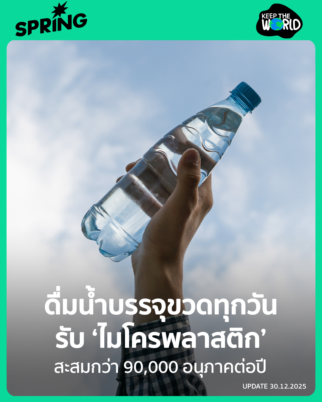งานวิจัยชี้ ผู้ที่ดื่มน้ำดื่มบรรจุขวดเป็นประจำทุกวัน จะได้รับอนุภาคไมโครพลาสติกเพิ่มขึ้นปีละ 90,000 อนุภาค ขณะที่ทั่วโลกยังตระหนักถึงปัญหาจากขวดพลาสติกน้อยมาก