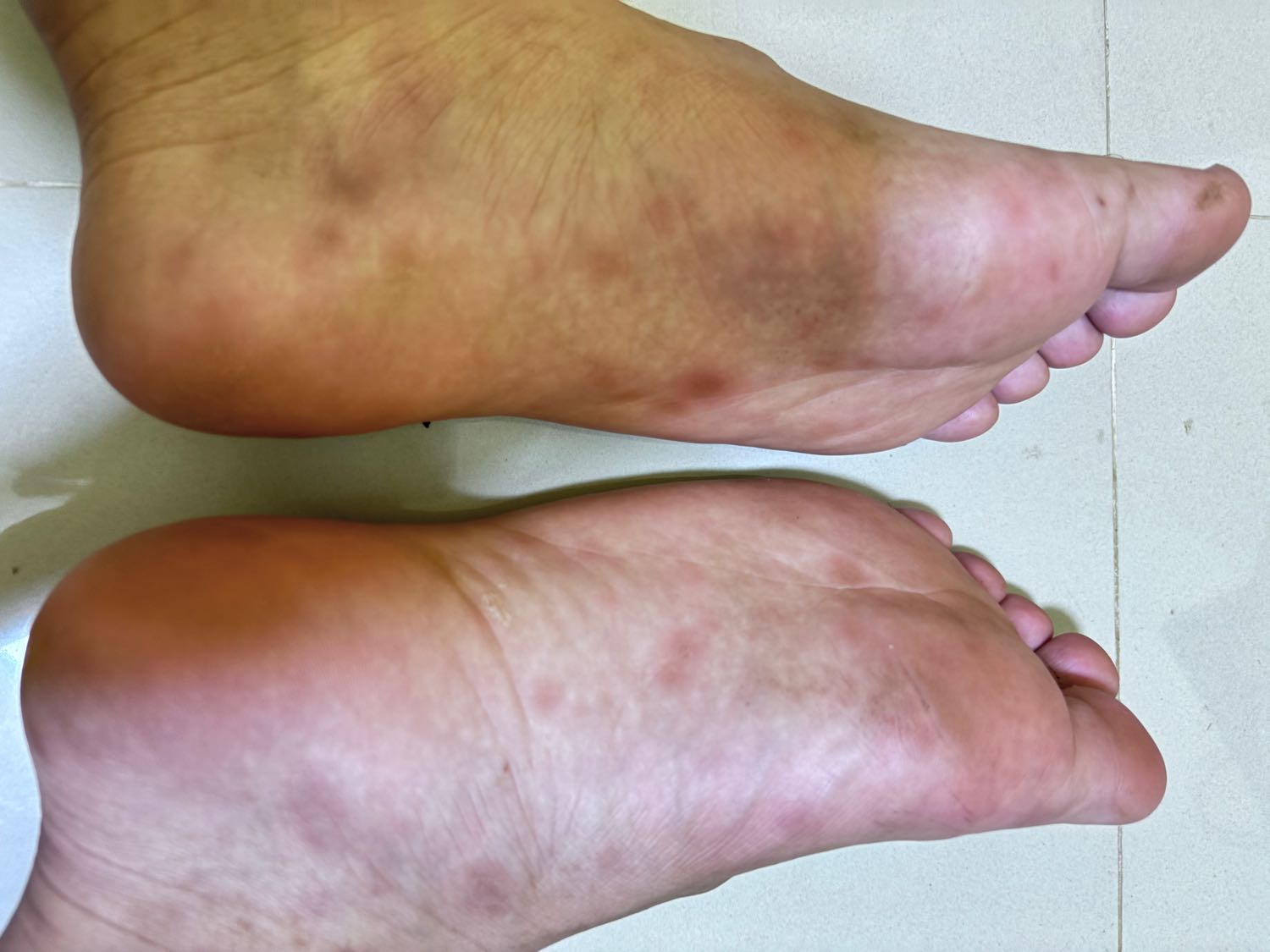 (มีภาพประกอบ) ฝ่าเท้ามีรอยจ้ำแดง คัน แสบ ร้อน เป็นอาการของโรคอะไรคะ ใครรู้ช่วยบอกที