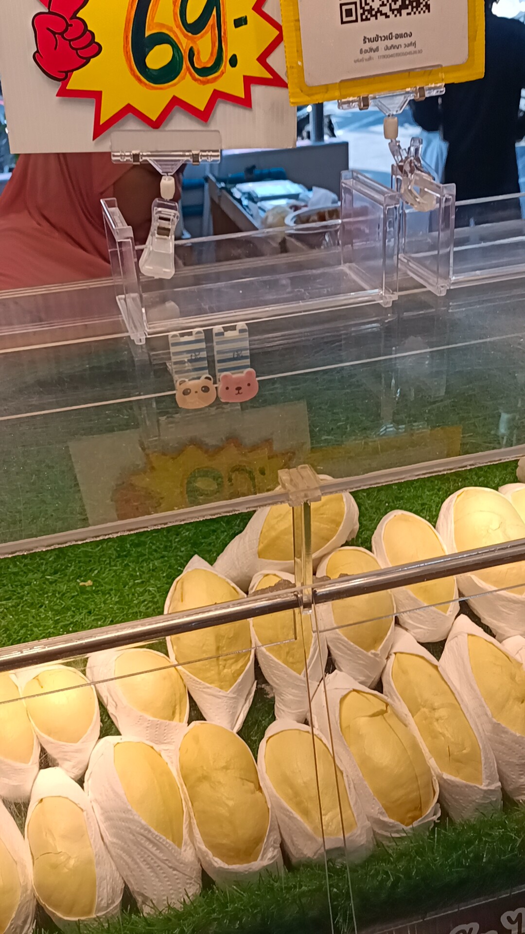ซื้อทุเรียนหมอนจากตลาดนัดมาหนึ่งแพ็ค ได้คนละชิ้นครึ่ง พอหอมปากคอมคอ.. เพื่อน ๆ ชอบทานทุเรียนกันไหมครับ