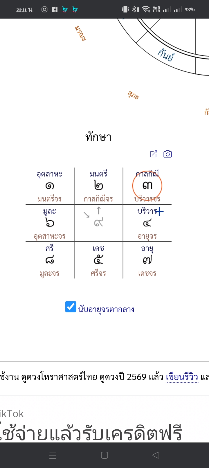 ทักษาจร แบบนับตากลาง กับ ไม่นับตากลาง