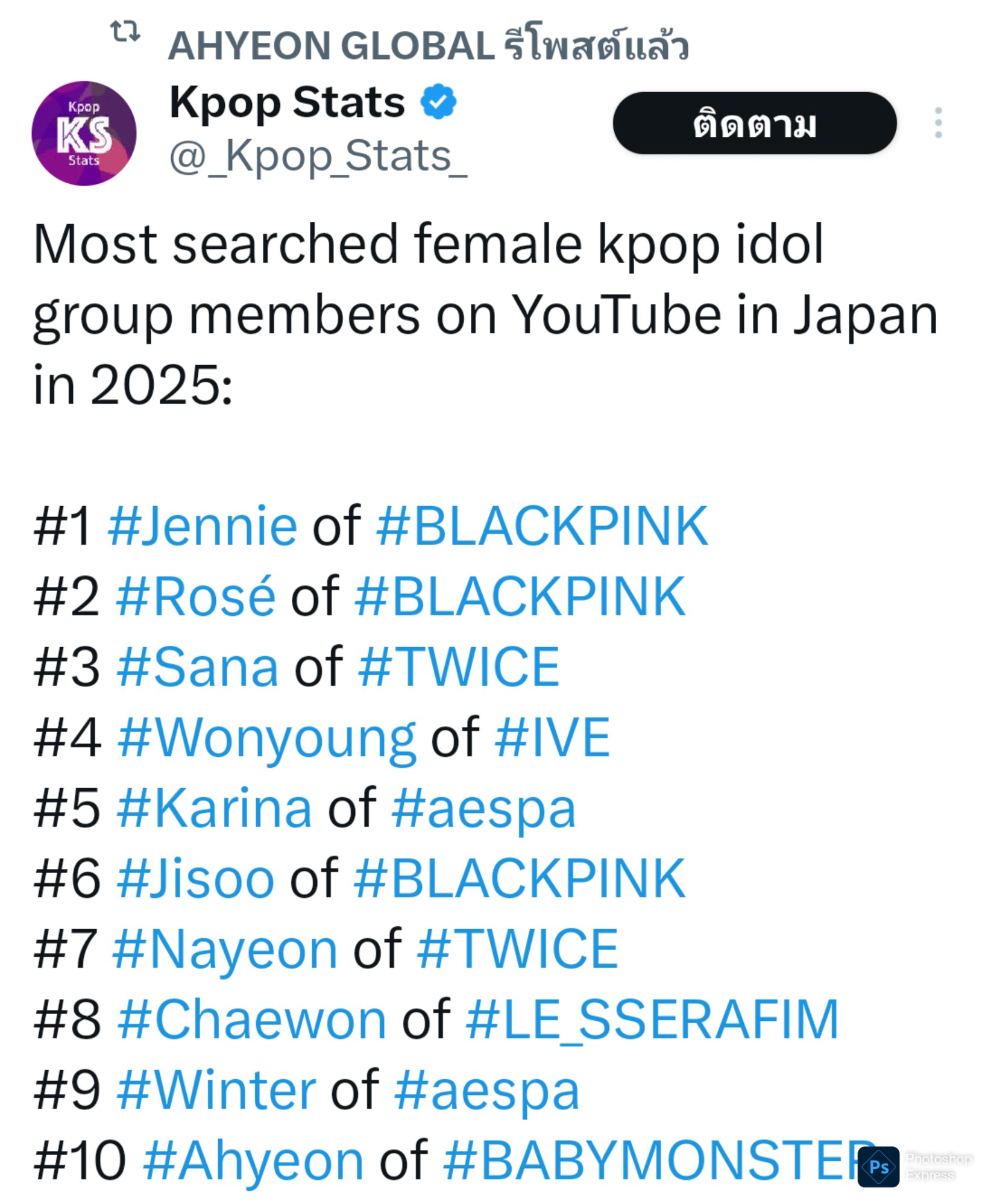 AHYEON BABYMONSTER คือไอดอลเคป๊อปเจน 5 รวมชายหญิงที่มีการสืบค้นจากทั่วโลกมากที่สุดบน Google ในปี 2025