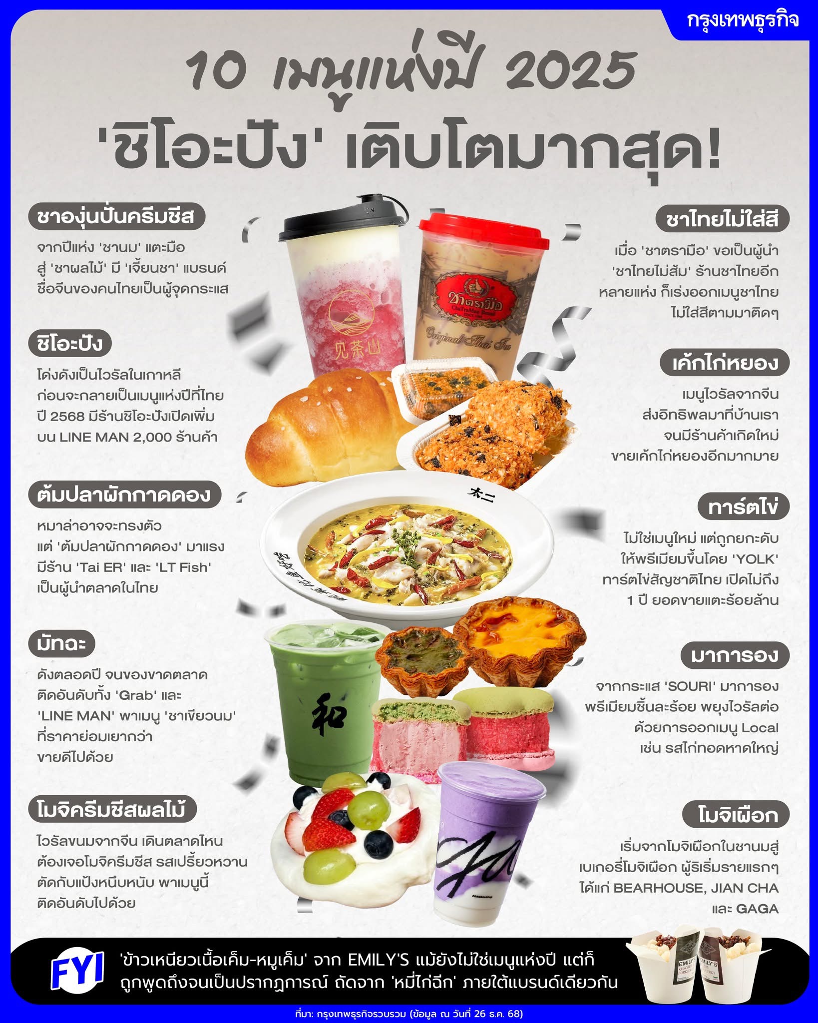 10 เมนูแห่งปี 2025 'ชิโอะปัง' เติบโตมากที่สุด!