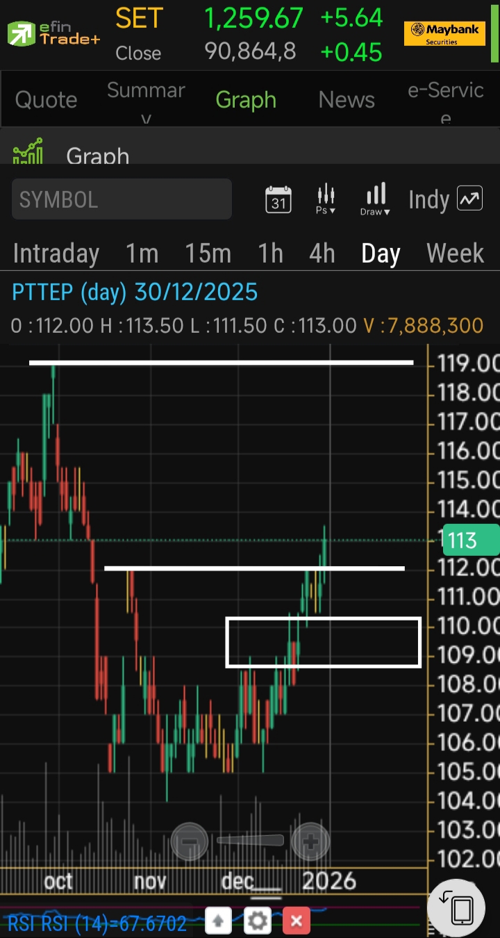 ทางนี้ อดใจไม่ไหว เลย ปล่อยไปที่ 111.5 มาเข้า PTT และ เติม EGCO ไปอีกหน่อย PTTEP เขาจะย่อมาให้เก็บอีกไหม สัก 109-110 ก็ยังดี
