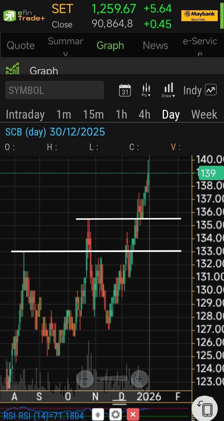 อีกตัวที่เฝ้ารอคือ SCB รอรับแถว แนวต้านเก่า ที่ break ขึ้นไปได้ หวังว่าจะมีย่อมาสักวัน หลังปีใหม่