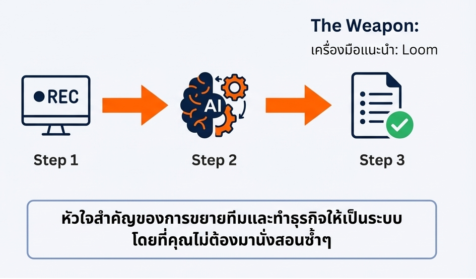 ลองจินตนาการว่าคุณกำลังทำแอดโฆษณา Facebook คุณแค่อัดวิดีโอตอนที่คุณกดตั้งค่ากลุ่มเป้าหมาย แล้วให้ AI สร้างคู่มือออกมา ครั้งหน้าเมื่อมีทีมงานใหม่เข้ามา คุณแค่ส่งคู่มือนี้ให้เขา เขาจะทำตามได้ทันทีโดยที่คุณไม่ต้องมานั่งสอนซ้ำๆ นี่คือหัวใจสำคัญของการขยายทีมและการทำธุรกิจให้เป็นระบบ