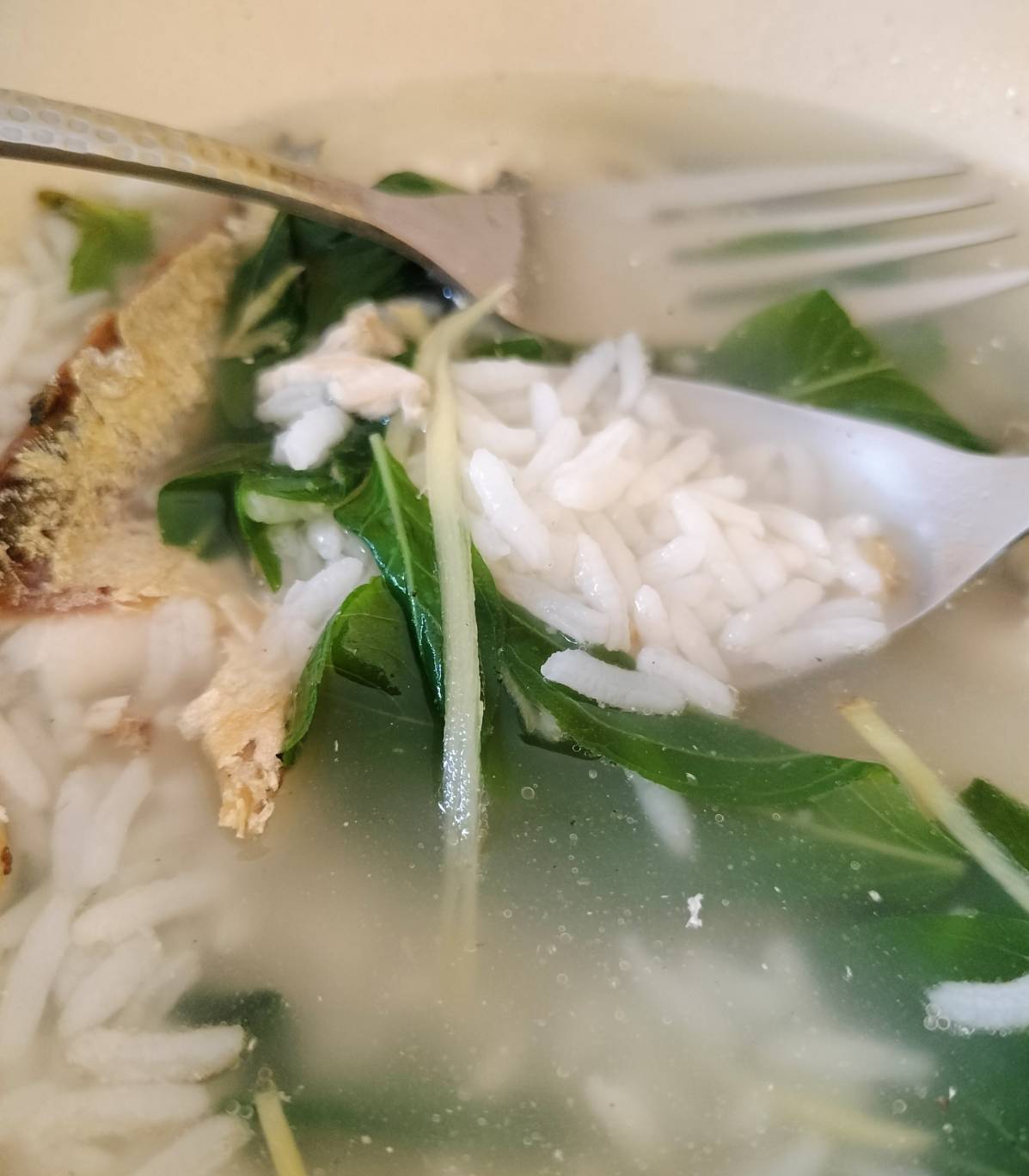 แกะเอาแต่เนื้อมาใช้ทำข้าวต้มปลาทูกินเช้านี้