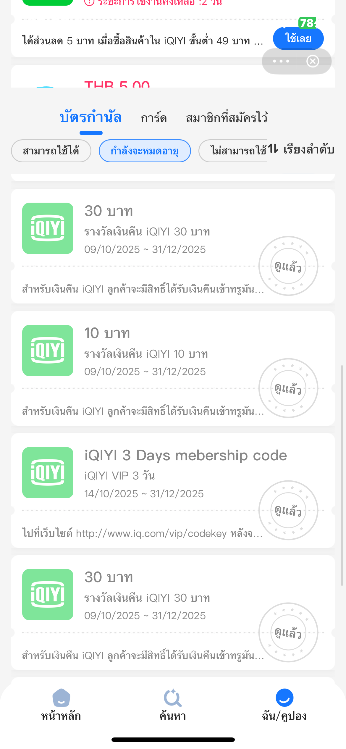 อยากทราบว่า บัตรกำนัลเงินคืนของiQIYI ในทรูวอเลตจะได้เงินคืนทั้งหมดหรือแค่ใบเดียวครับ