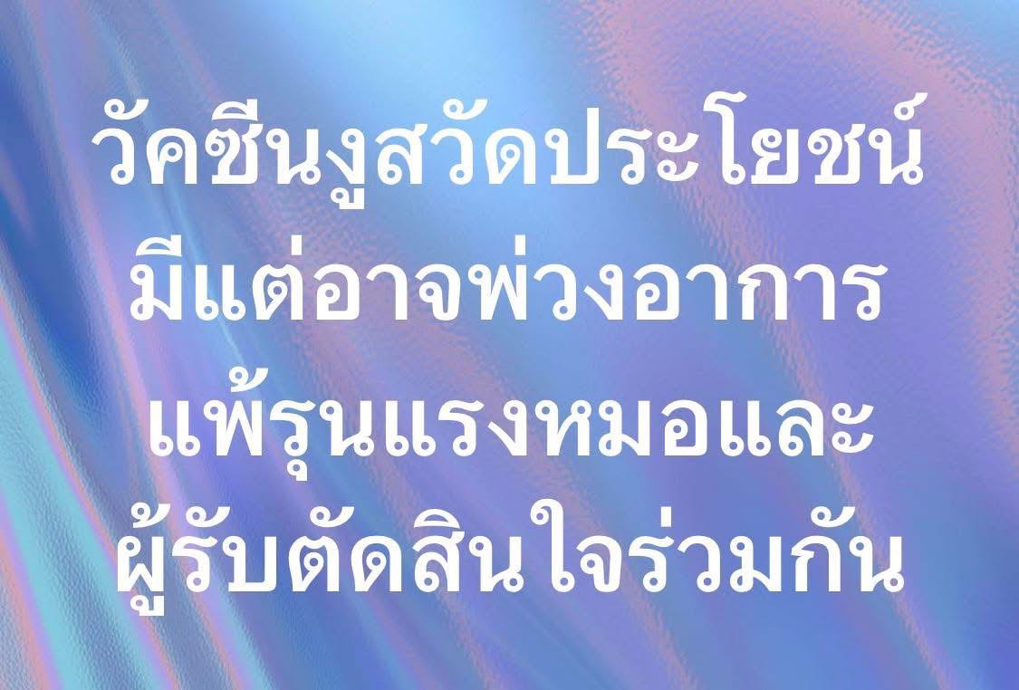 วัคซีนงูสวัด ประโยชน์มีจริง แต่อาจพ่วงอาการแพ้จนรุนแรงได้ แพทย์และผู้รับวัคซีน ตัดสินใจร่วมกัน..