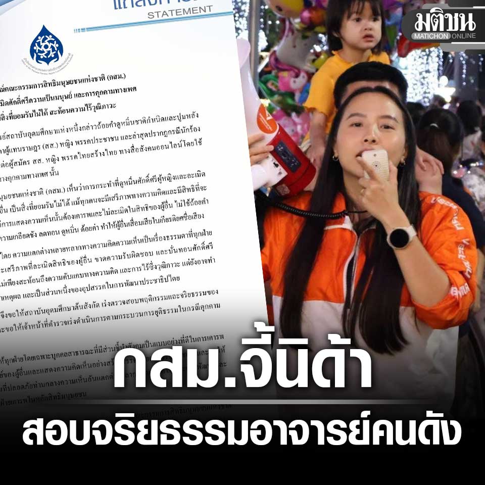 กสม. จี้นิด้า สอบจริยธรรมอาจารย์คนดัง หลังดูหมิ่นชาติกำเนิดส.ส. ชี้ละเมิดความเป็นมนุษย์