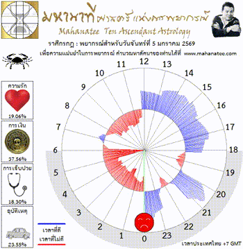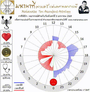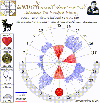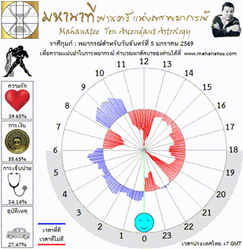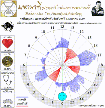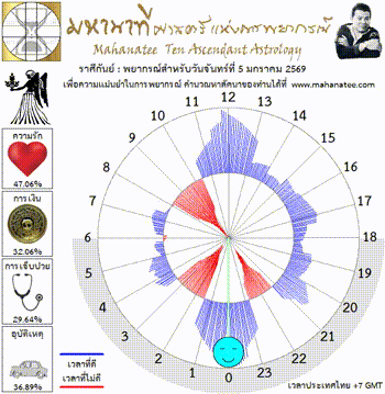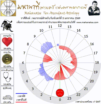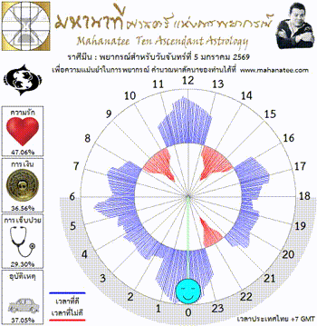 แผนภูมิและพยากรณ์ 12 ราศี สำหรับ วันจันทร์ที่ 5 มกราคม 2569