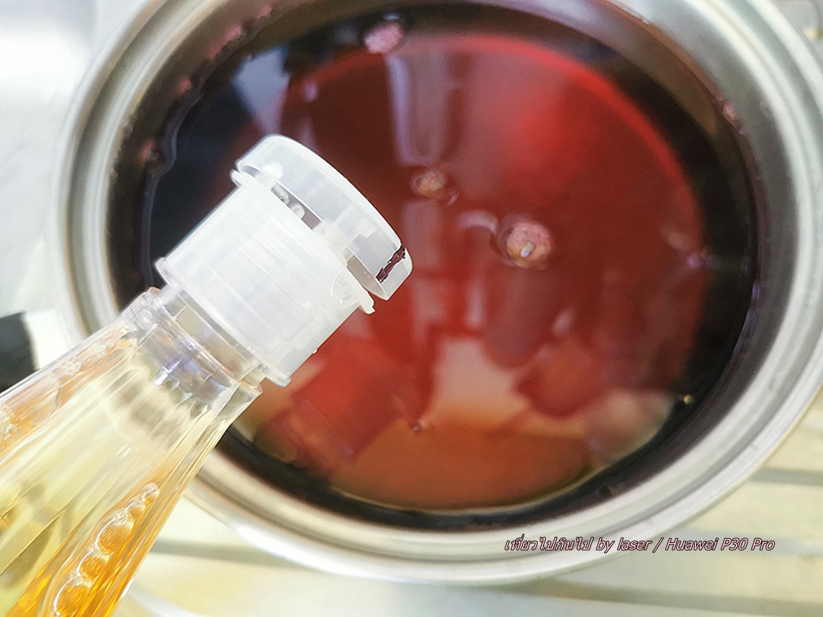 ใส่น้ำแล้วต้มจนเดือดเป็นสีแดงเข้ม