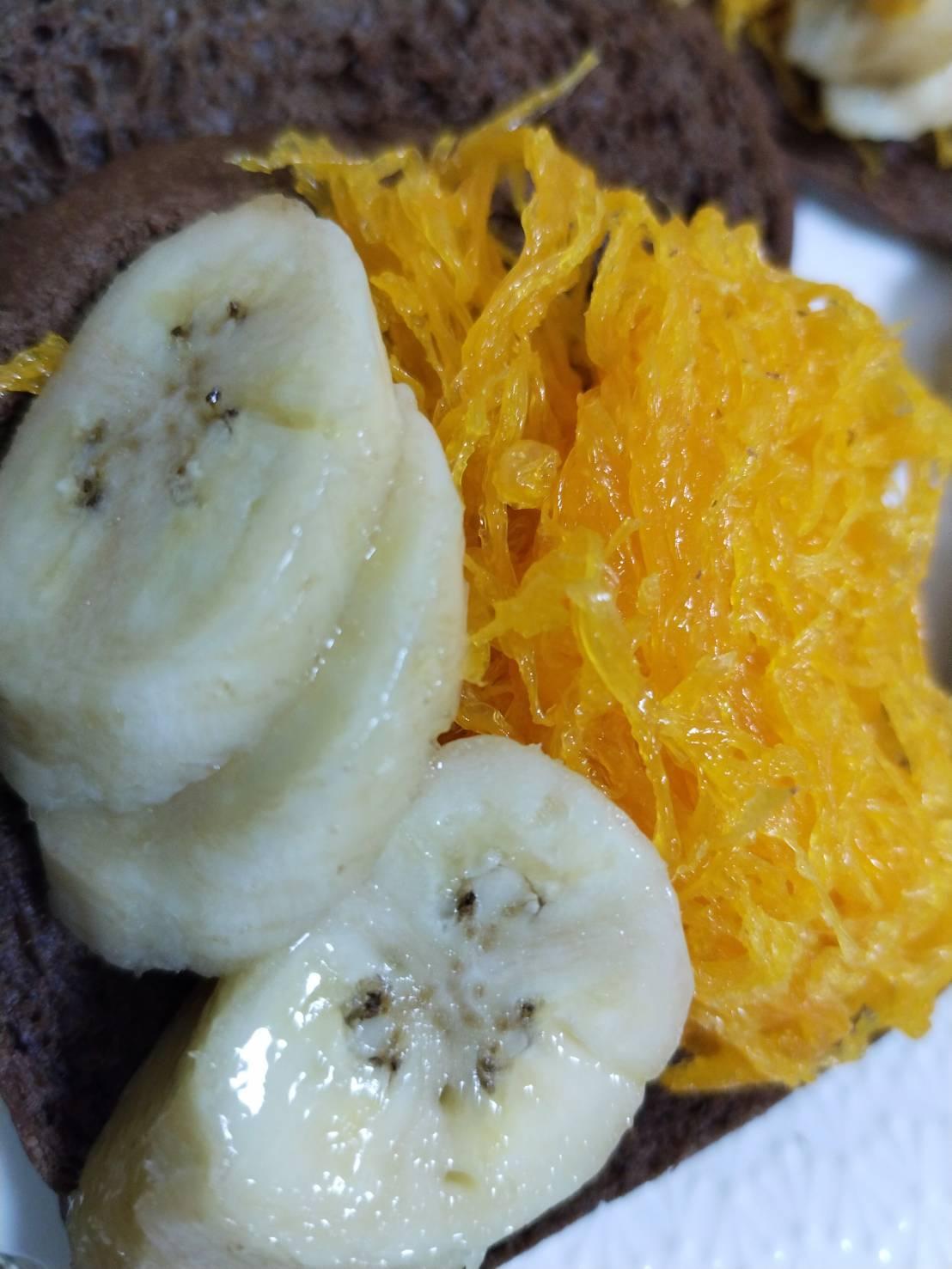 ก่อนทำงาน แซนวิชฝอยทอง ขนมปังช็อกโกแลต กล้วย