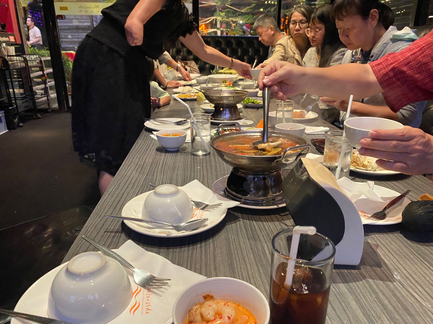 เรื่องอาหารไว้ใจได้เสมอครับ เมนูหลากหลายมาก เหมาะกับการมาเป็นกลุ่มใหญ่ๆ วันนี้สั่งมาเต็มโต๊ะ ทั้งต้มยำกุ้งหม้อไฟร้อนๆ ซดคล่องคอ และกับข้าวอื่นๆ รสชาติจัดจ้านถูกปากคนไทย นั่งทานไปคุยไปเพลินมาก