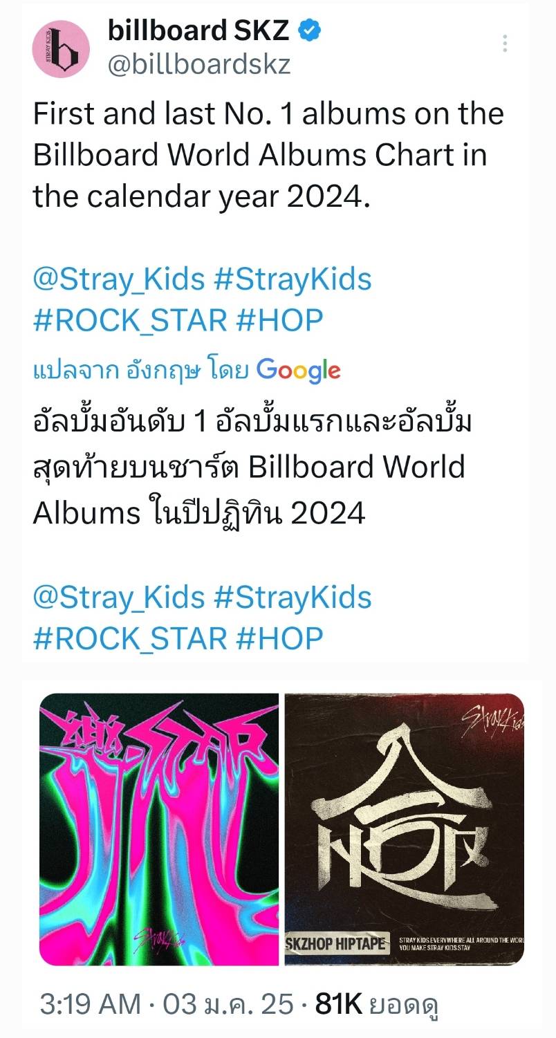 กดดูที่มาได้ที่นี่ 👉 @billboardskz และ 🔥 Stray Kids เป็นกลุ่มK-Pop ที่ยิ่งใหญ่ที่สุดบน Billboard อเมริกาในปี2024