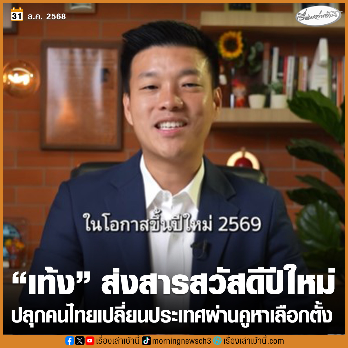 “เท้ง” ส่งสารสวัสดีปีใหม่ ปลุกคนไทยทวงคืนความยุติธรรมผ่านคูหา ปชน.เปลี่ยนประเทศให้เป็นของประชาชน ชูนโยบาย “ไม่เทา-เท่ากัน-ทันโลก” ซัดโครงสร้างอำนาจเดิมขวางประเทศ