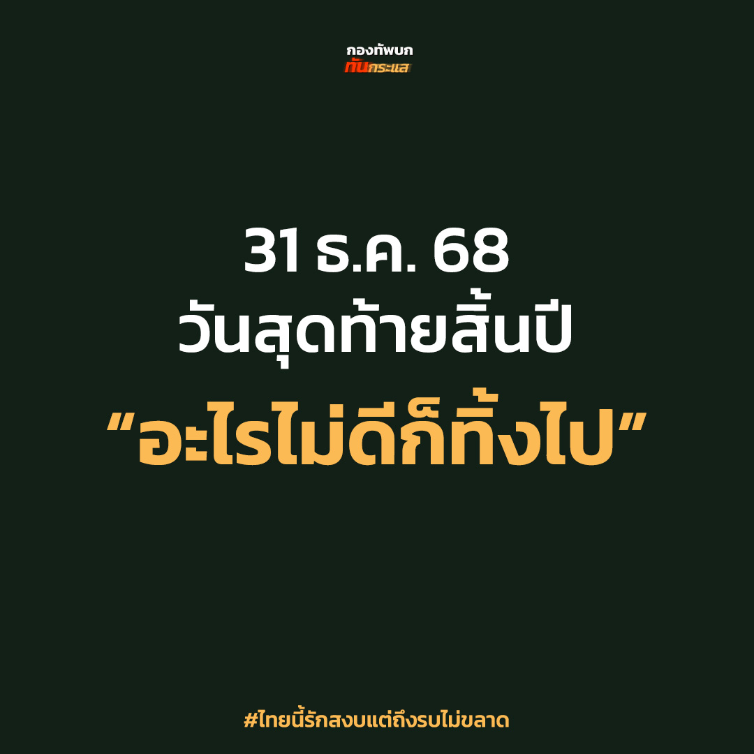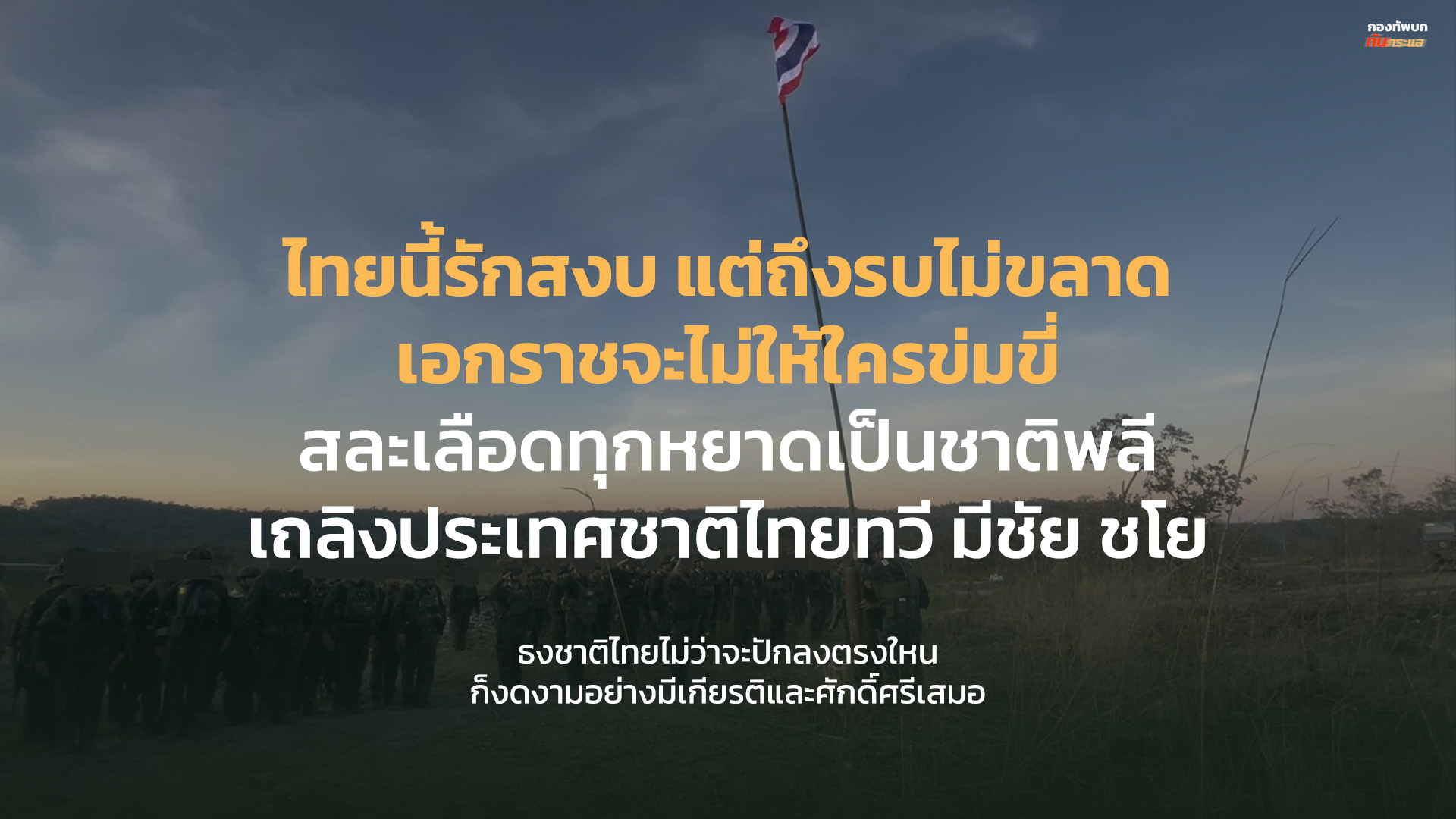 ขอบคุณคนไทยที่ไม่ลืม พี่น้องทหารเรา แคมเปญ “ปีใหม่ไม่ลืมกัน” เวลา 00.00 น. ของวันที่ 1 ม.ค. 2569 เชิญชวนคนไทย เปิดเพลงแรกของปี “เพลงชาติไทย” ร้องให้กึกก้อง และร่วมไว้อาลัยให้ทหารกล้า ก่อนจะเริ่มปี 2569 ด้วยรอยยิ้มและความสุขอิ่มเอมในแผ่นดินไทย