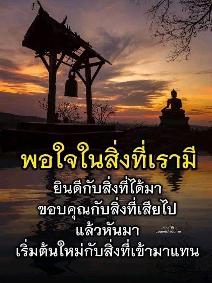พอใจในสิ่งที่เรามียินดีกับสิ่งที่ได้มาขอบคุณกับสิ่งที่เสียไป แล้วเริ่มต้นใหม่กับสิ่งที่เขามาแทน