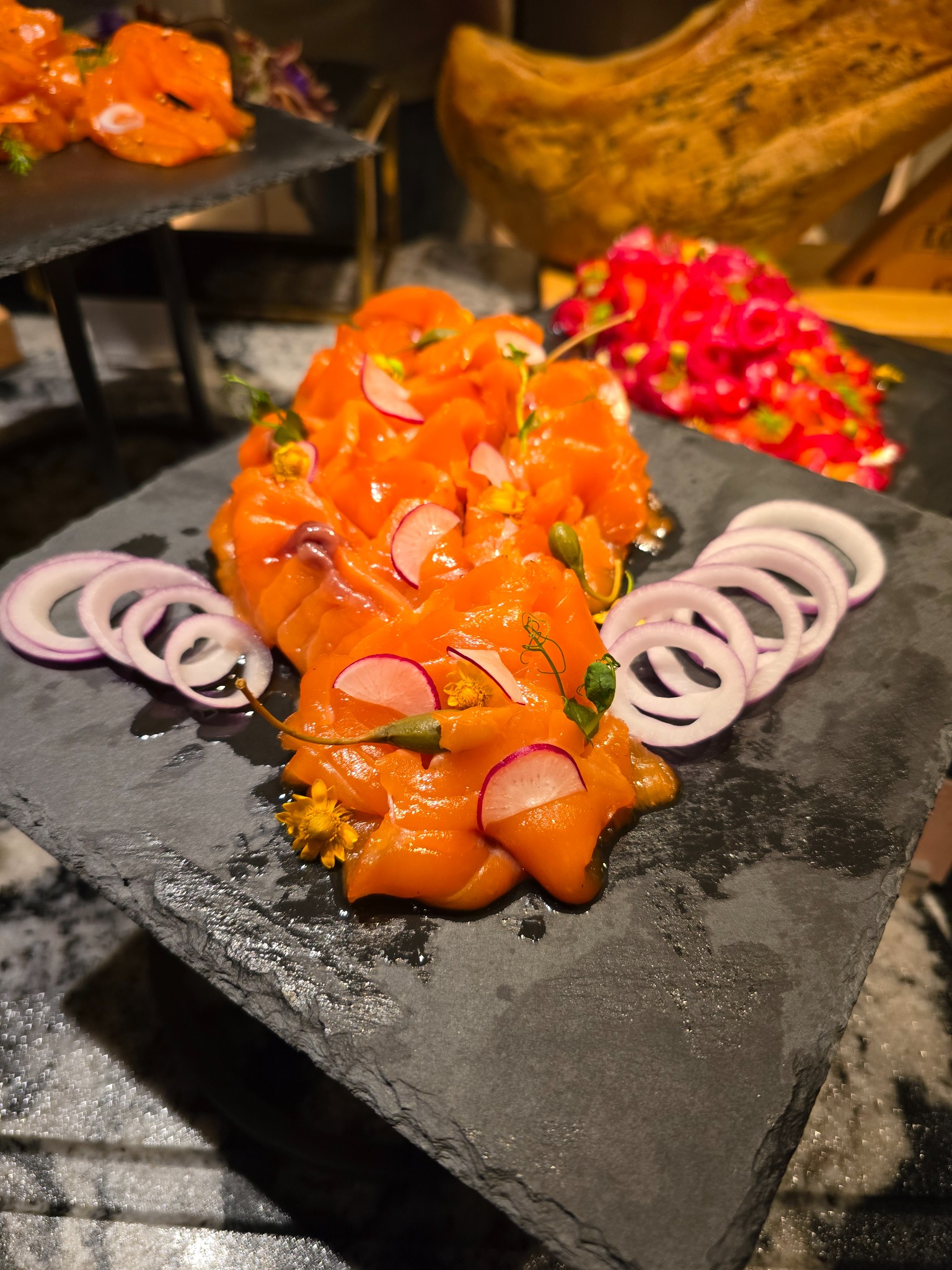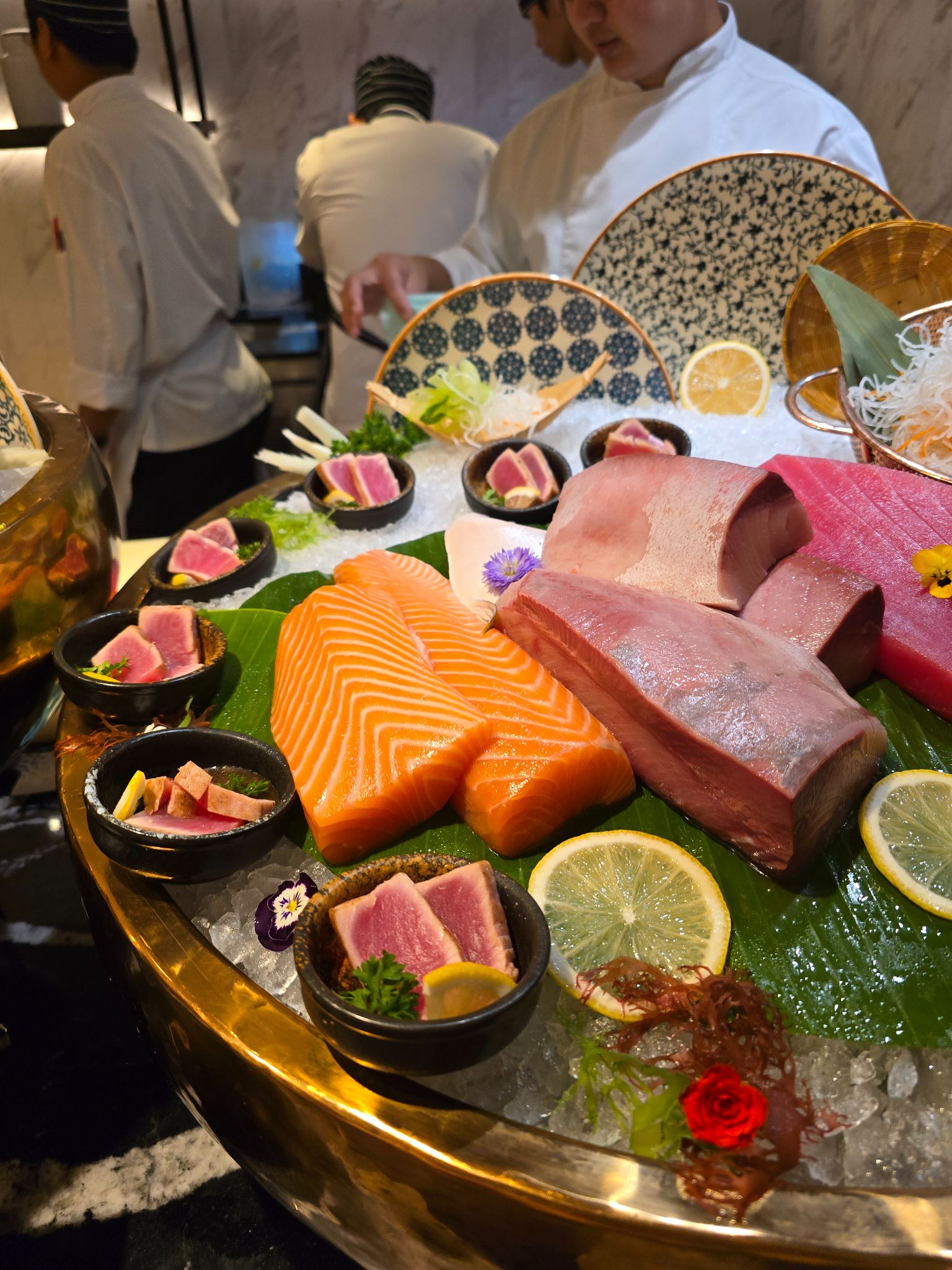 ​Alaskan King Crab: ขาใหญ่มาก เนื้อแน่น หวานฉ่ำสุดๆ ครับ จิ้มกับน้ำจิ้มซีฟู้ดรสชาติจัดจ้าน (รสชาติคล้ายน้ำแกงเลียงครับ แปลกดีแต่แซ่บ!) ที่ประทับใจที่สุดคือ พนักงานเติมตลอด ไม่มีของขาดเลยครับ แตกต่างจากหลายๆ โรงแรมที่โฆษณา King Crab Unlimited แต่แอบนำ Snow Crab มาปน หรือเติมแค่รอบเดียวแล้วหายไปเลย ใครเคยเจอแบบนี้บ้าง เล่าให้ฟังหน่อยครับ