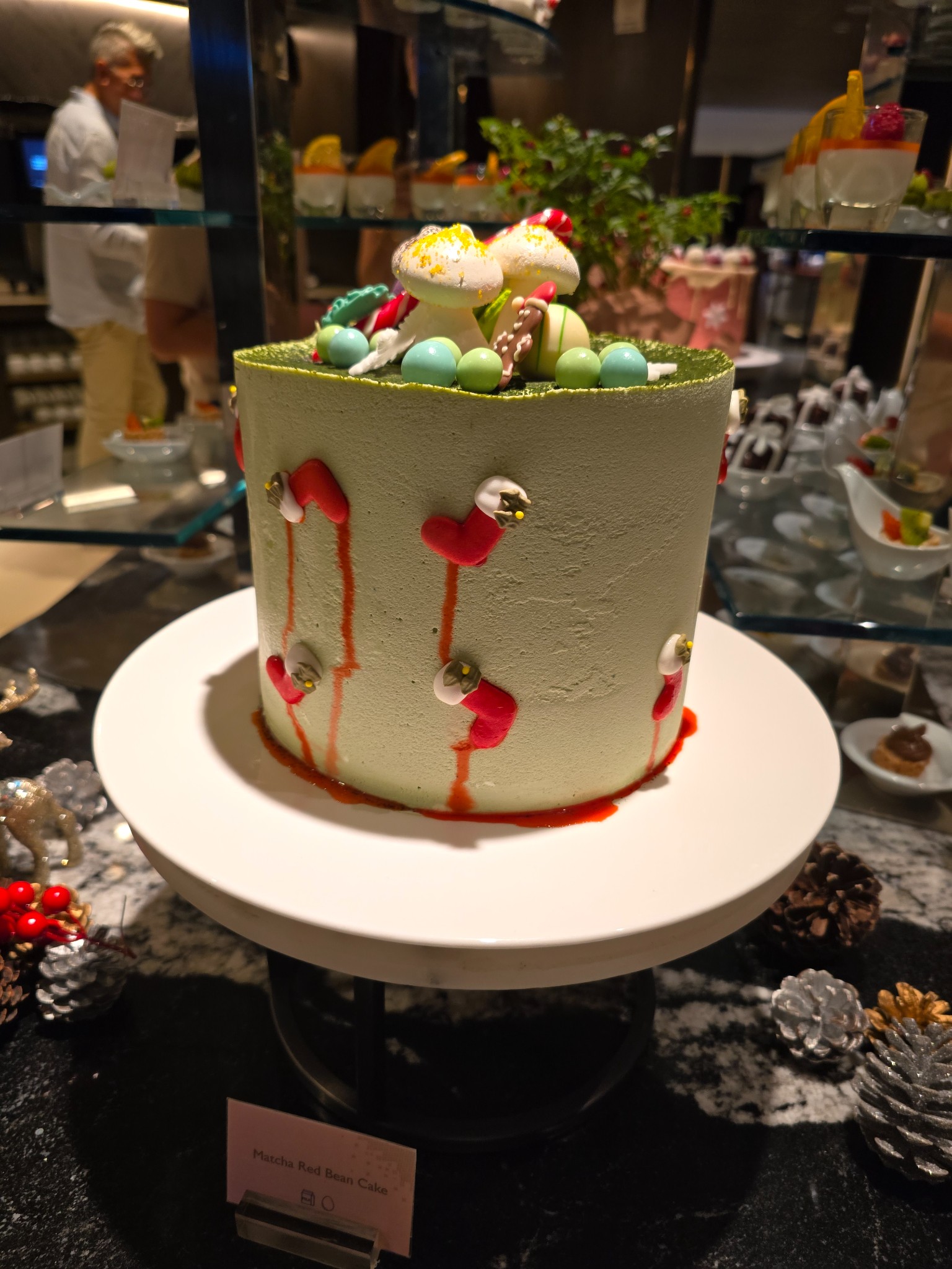 ​เค้ก: ลองเค้กชาเขียวถั่วแดง ซึ่งเข้ากันได้ดี และเค้กช็อกโกแลตหวานขมกำลังดี อร่อยครับ
