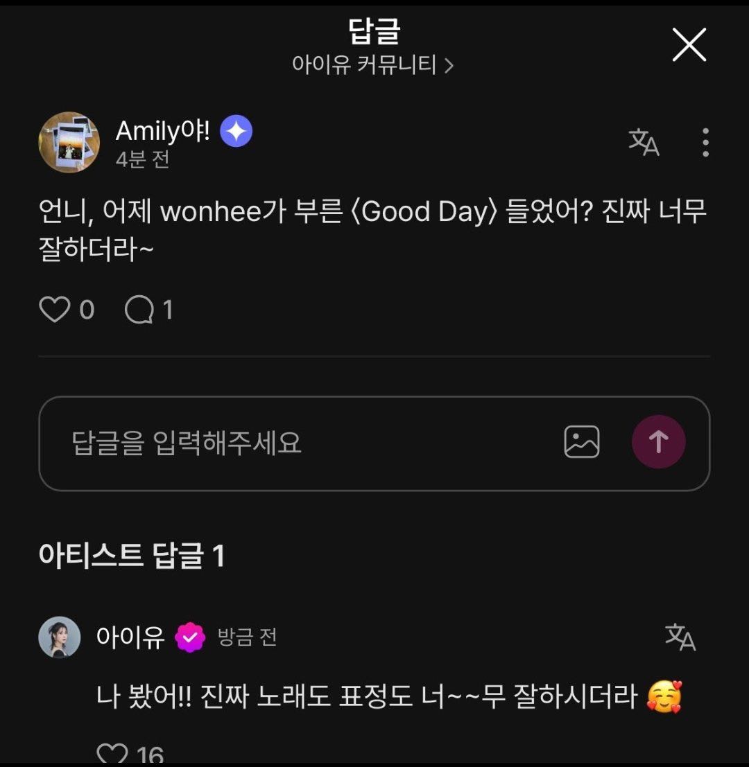 มีแฟนคลับไปถามพี่ลี่ใน Weverse ว่าได้ฟังน้องวอนฮีร้อง Good Day เมื่อวานมั้ย