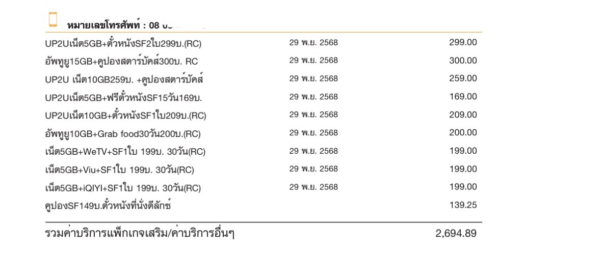 ช่วยดูหน่อยครับ ไม่เคยสมัครแพ็คเกจเสริมของทรู แต่มีมาเก็บรายเดือน 2,xxx บาท งงมาก