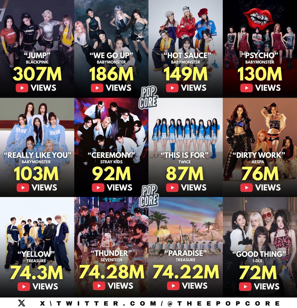 BLACKPINK และ BABYMONSTER ขึ้นแท่นยอดวิวสูงสุดในหมวด K-Pop ที่ปล่อยในปี 2025