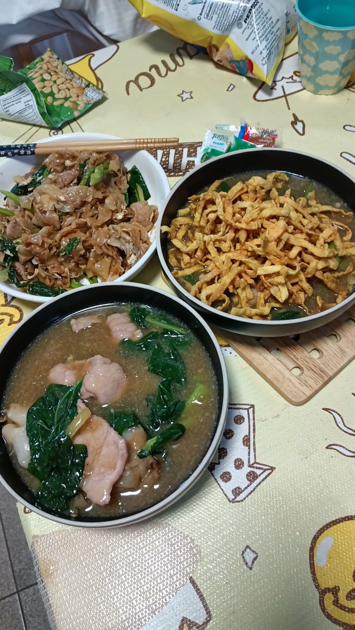 เพื่อนผมแวะมาหาก่อนจะกลับพิจิตร บอกว่าอยากกินราดหน้าตอนเกือบสี่ทุ่ม เอาสิ เดี๋ยวเลี้ยง เพราะใช้คนละครึ่ง+ได้ ร้านหนึ่ง ยอดอร่อย ริมน้ำ เดี๋ยวนี้มีเมนูเป็นเล่มด้วย ผมคงไม่ได้มาร้านนี้นานแล้วจร