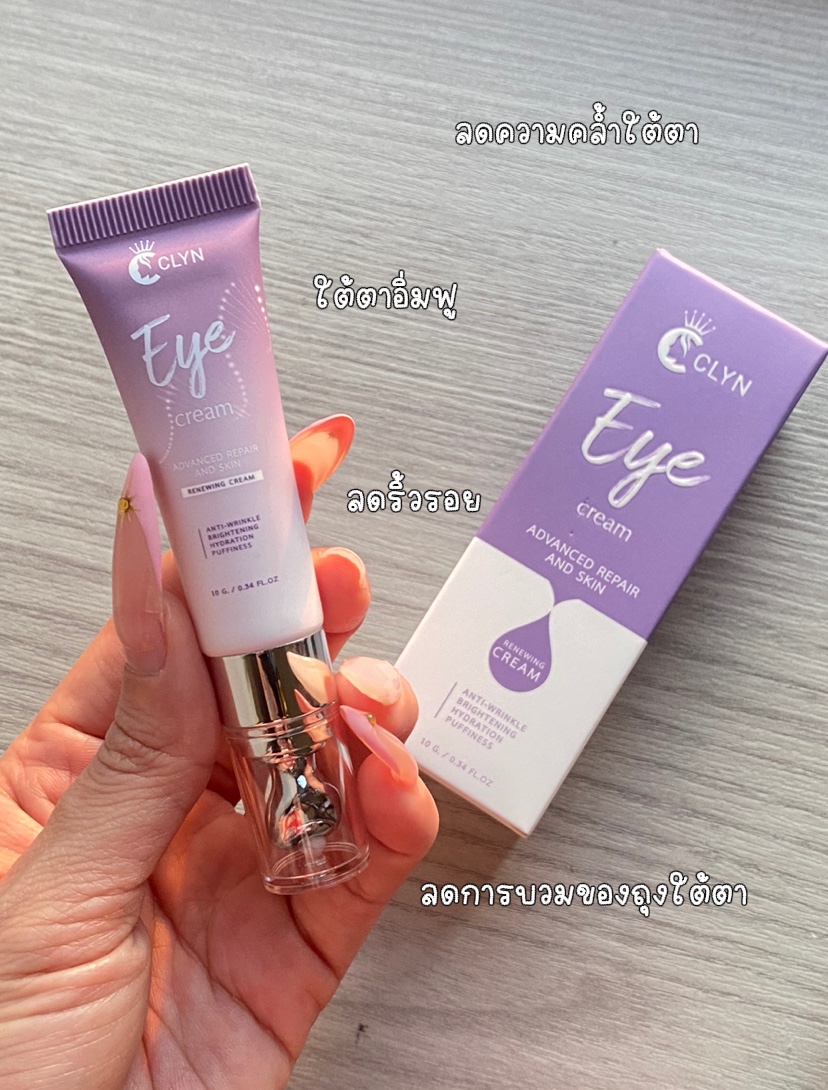 อายครีมสูตรคุณหมอต่อที่มีงานวิจัยเฉพาะของ Clyn Cream ที่ทดลองโดยอาสาสมัคร 22 คนพบว่าหลังใช้ ริ้วรอย รอยคล้ำใต้ตาและถุงใต้ตาลดลง