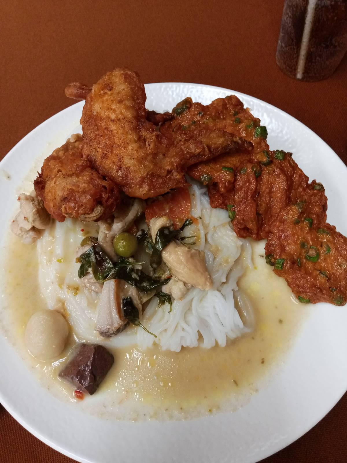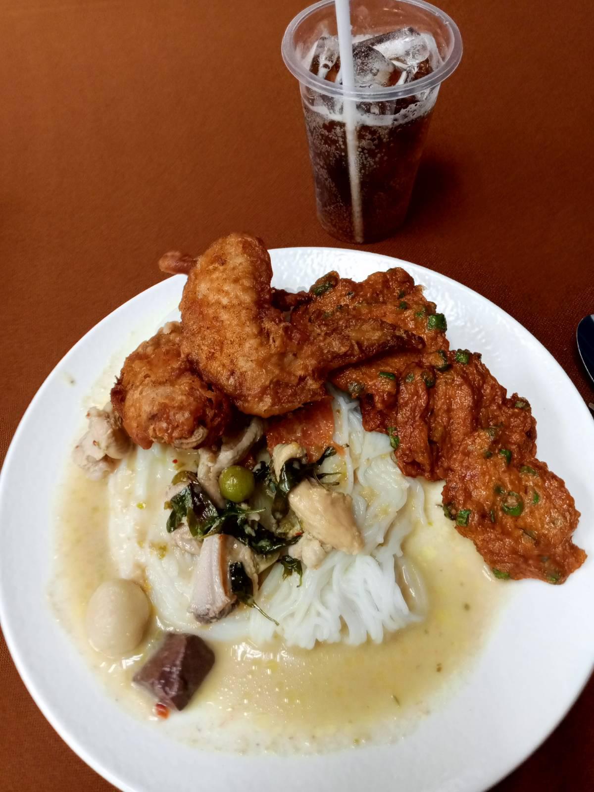 ขนมจีนแกงเขียวหวาน ทอดมัน และปีกไก่ทอด