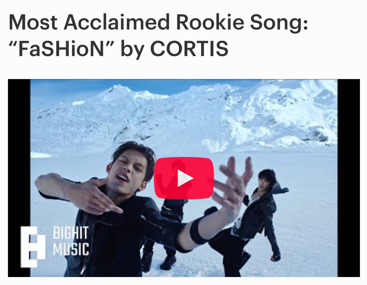 เพลง FaSHioN ของ CORTIS ได้รับการยกย่องให้เป็นเพลงของศิลปินหน้าใหม่ที่ได้รับเสียงชื่นชมมากที่สุดแห่งปี 2025 จากนิตยสาร Forbes