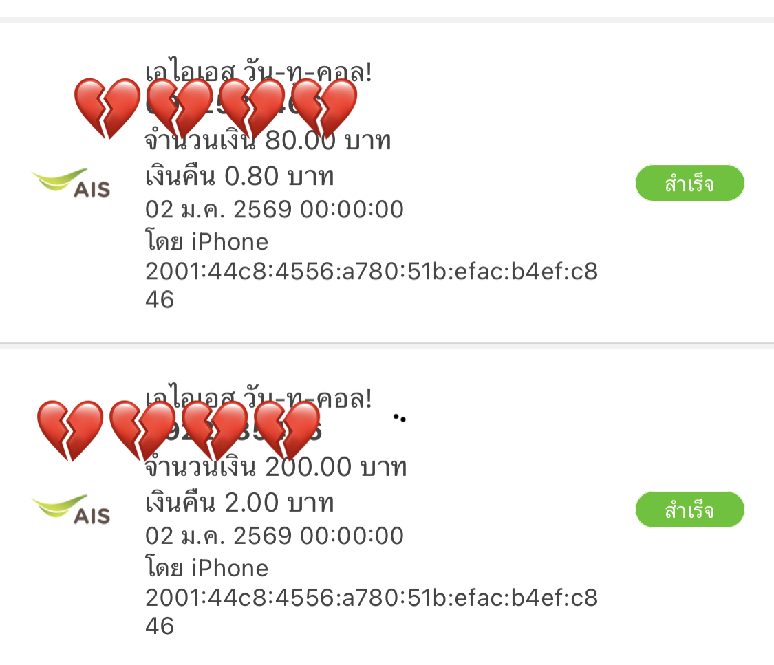 จากนั้นเงินก็เข้าปกติ 200 แรก ก็ตัดไปเลย140 แล้วแทนที่จะขึ้น ไม่สามารถตัดค่าแพ็ก บลาๆๆ ได้ เนื่องยอดเงินไม่เพียงพอ