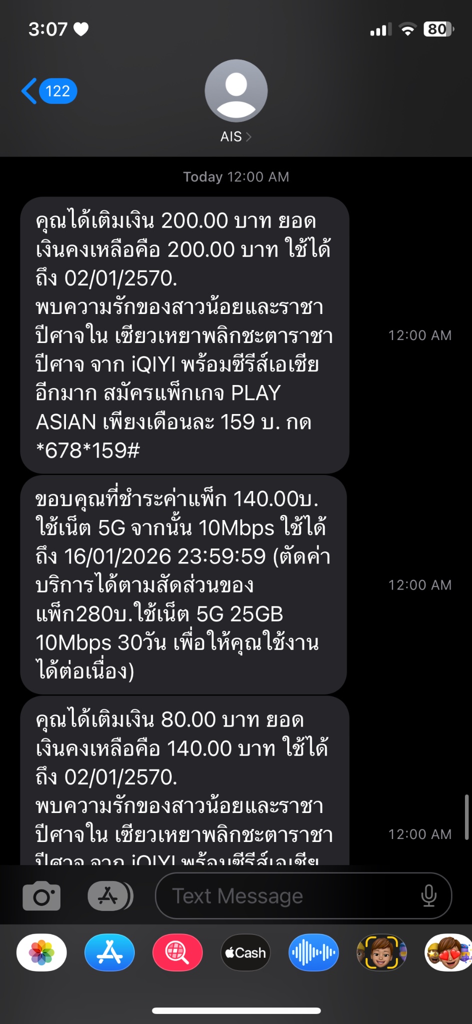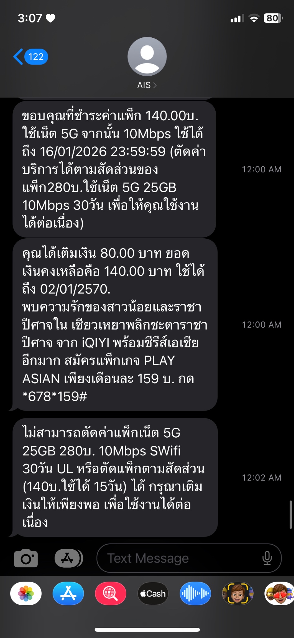 พอเงิน80 เข้าก็ไม่มีอะไรเกิดขึ้นอีกนอกจาก sms ที่ส่งมาบอกว่า ไม่สามารถตัดแพ็กเน็ต บลาๆๆ ได้