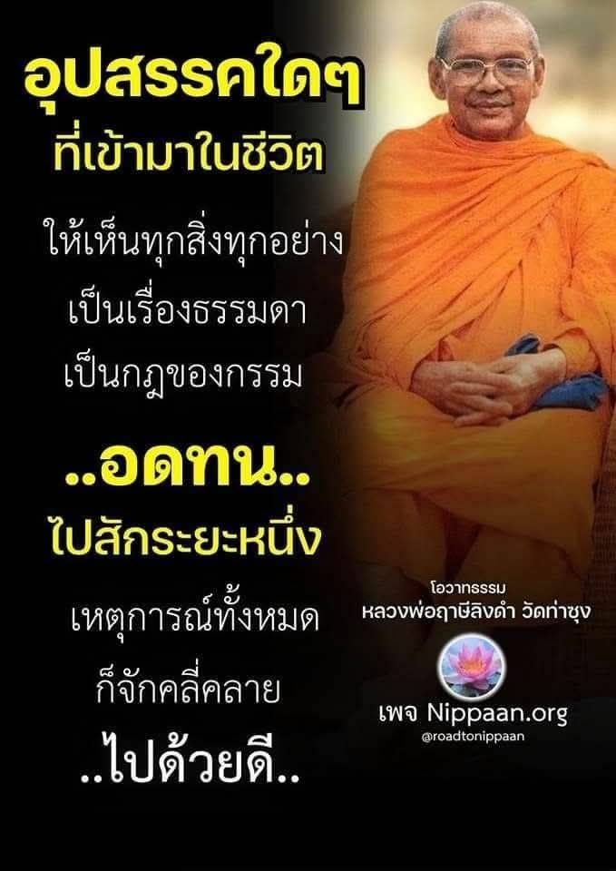 อุปสรรคใดๆที่เข้ามาในชีวิต ให้เห็นทุกสิ่งทุกอย่างเป็นเรื่องธรรมดา เป็นกฎของกรรม อดทนไว้แล้วทุกอย่างจะดีเอง