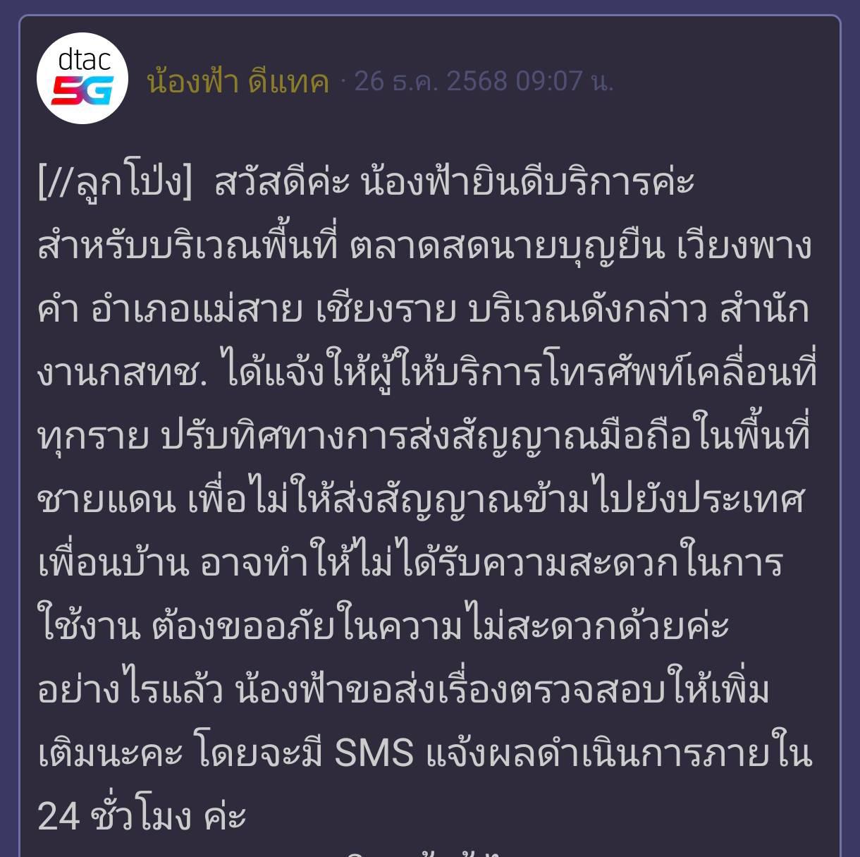 อยากให้ทุกค่ายช่วยมาขยายสัญญาณ ที่ทำการอุทยานแห่งชาติลำน้ำกก เชียงราย ค่ะ AIS dtac ไม่มีสัญญาณ true H มี 1-2 ขีด