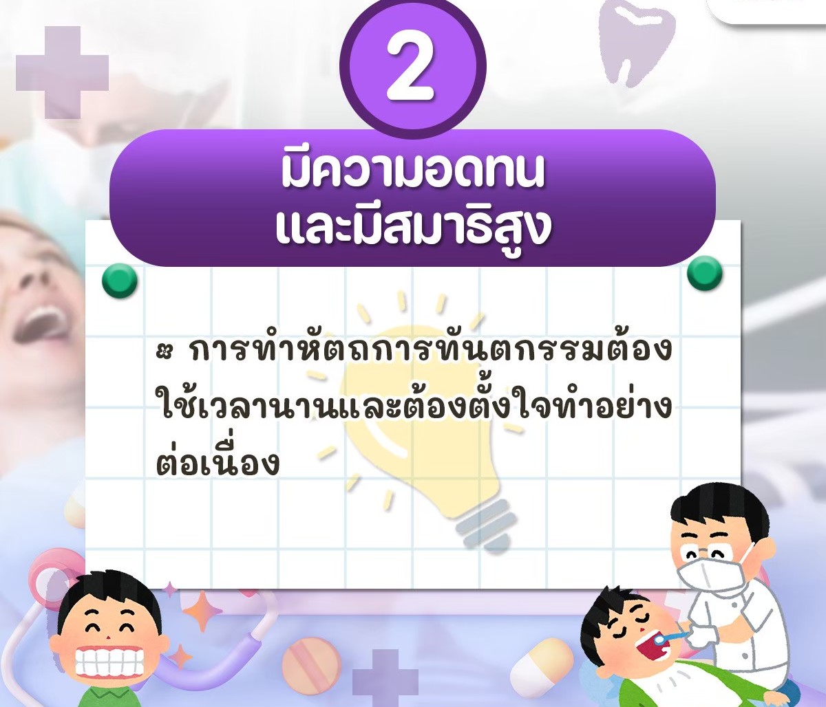 🔹 ความอดทนและสมาธิ: หัตถการบางอย่างใช้เวลานาน ต้องมีความตั้งใจต่อเนื่อง