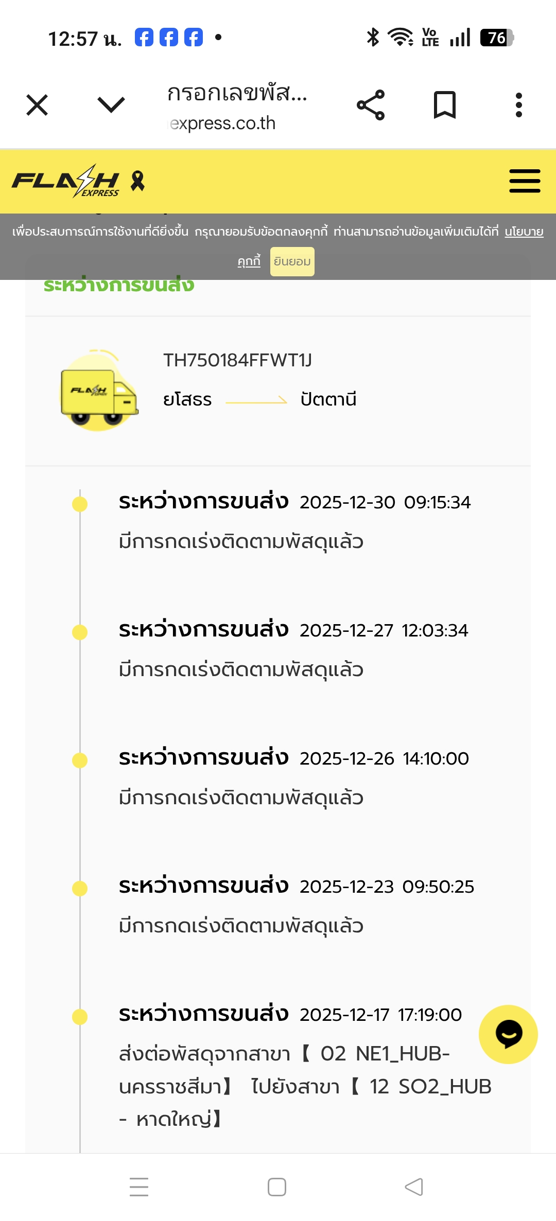 ใครเคยเจอเหตุการณืนี้บ้างคะส่งของแล้วของไม่ถึง โทรก็ไม่รับ กดแจ้งไปหลายรอบก็เงียบ เมื่อวันที่ 16/12/68 ได้ใช้บริการขนส่งสินค้าแฟลช จากยโสธรไปปัตตานี เป็นข้าวสารหนัก23กก. ส่งไปช่วยเหลือญาติที่ถูกน้ำท่วม เราส่งไปหลังจากผ่านวิกฤตน้ำท่วมไปแล้วประมาณ1เดือน ส่งไป2ถุง เป็นถุงละหมายเลขพัสดุกัน สรุปมี2หมายเลขพัสดุ ไปพร้อมกันแต่ปรากฏว่าของไปถึงแค่หมายเลขพัสดุเดียว1ถุง อีกถุงยังมาไม่ถึงจนวันนี้2/1/69ของก็ยังไม่ถึง เช็คแล้วทราบว่าของน่าจะค้างที่หาดใหญ่ เพราะมันขึ้นส่งจากโคราชไปหาดใหญ่แล้ว โทรตามก็แล้ว(เจอฝากข้อความเสียง) ตามไปที่ขนส่งต้นทางก็แล้ว พนักงานรับปากจะตามให้แต่ท่าทางจะรับปากส่งๆเพราะยังคงเดิม หมดใจแล้วจะขอเคลมสินค้าและเอาค่าส่งกลับ 280 บาทด้วย ถ้ายังไม่สามารถหาสินค้าเราไปส่งได้ อยากถามผู้รู้ว่าต้องไปแจ้งที่ไหน บอกตรงๆโมโหมาก