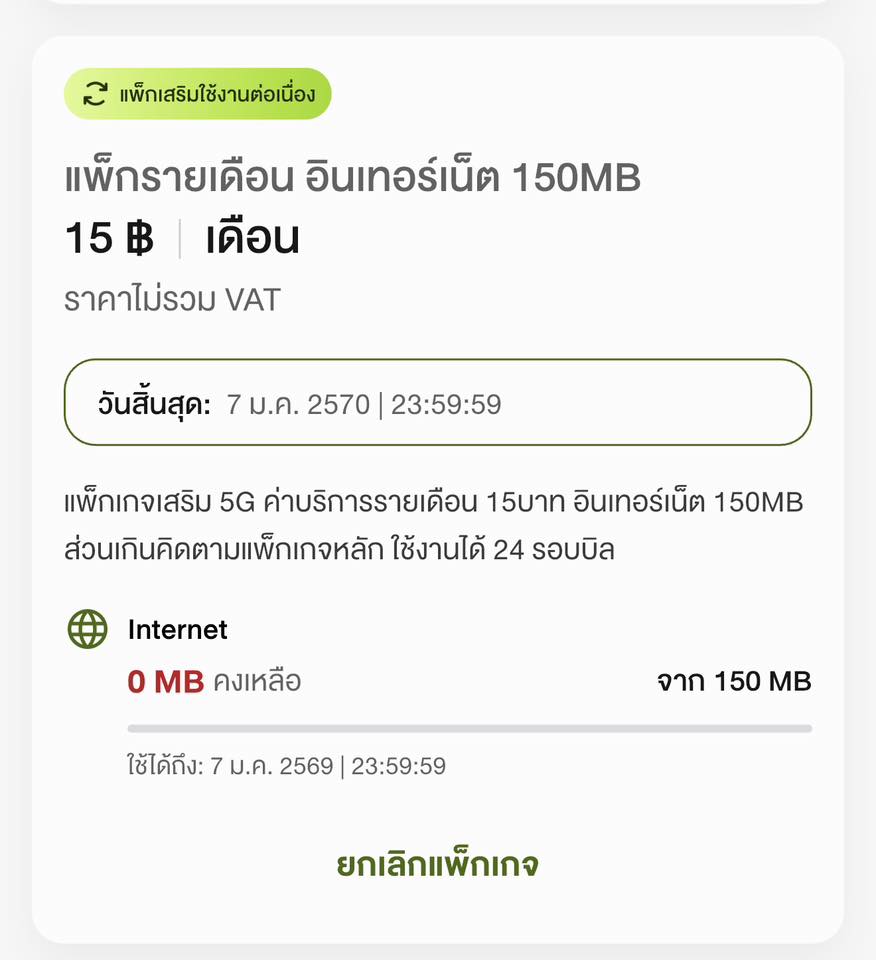 มีเพื่อมาแนะนำบอกลองเสียเงินสมัครแพ็คเสริมเดือนละ 15บาทดู ได้5G 150MB หลังใช้หมดมันจะไปหักกับโปรหลักโดยที่ยังเป็น 5Gอยู่พอโทรไปก็อ้างว่าไม่มีถึงมีสมัครไปพอโปรเสริมหมดระบบก็ปรับไปให้ใช้ 4G