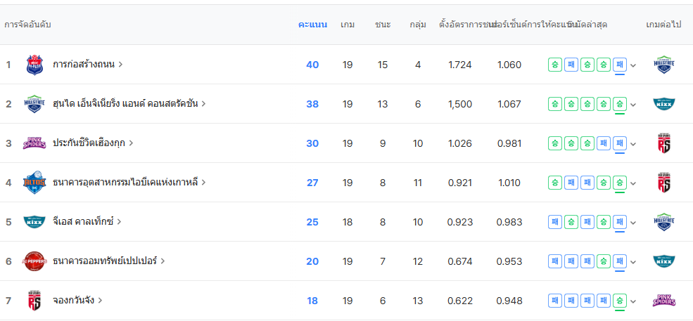 ส่วน GS ถ้า พน. ชนะจะแซงกลับมาที่ 4 ลุ้นกันมันส์แหละทีนี้ เลยครึ่งทางมาแล้วสำหรับลีคเกาหลี