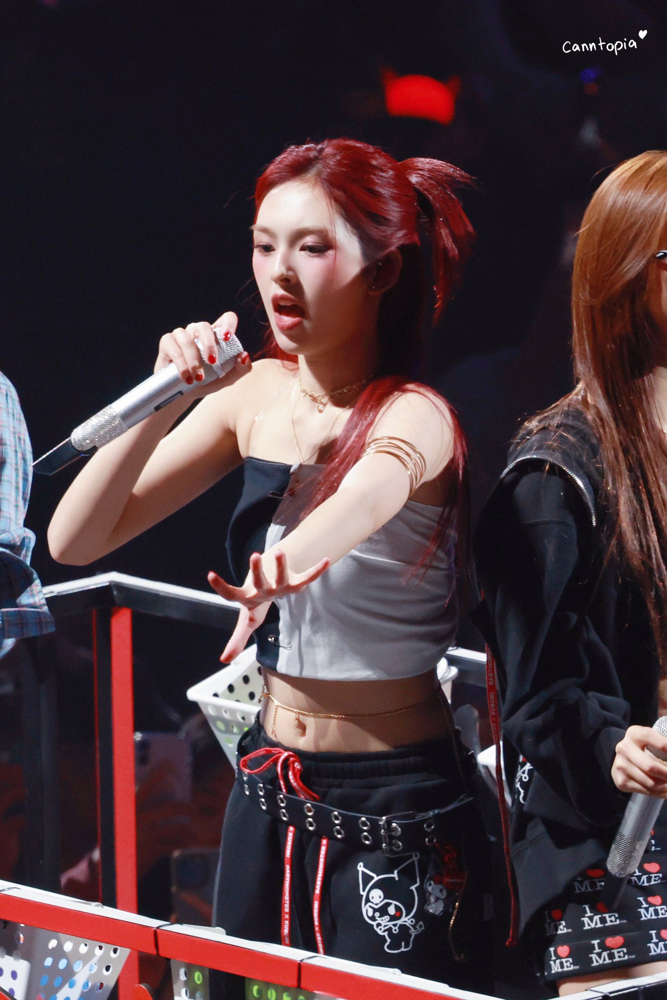 BABYMONSTER X Sanrio Kuromi Coming Soon CHIQUITA ใส่กางเกงมีรูป Kuromi ด้านหน้า และ สัญลักษณ์ BABYMONSTER ด้านหลัง