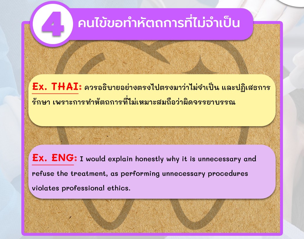 - ถ้าคนไข้ขอทำหัตถการที่ไม่จำเป็น? ต้องปฏิเสธอย่างจริงใจ เพราะการทำสิ่งที่เกินจำเป็นคือการผิดจริยธรรม!