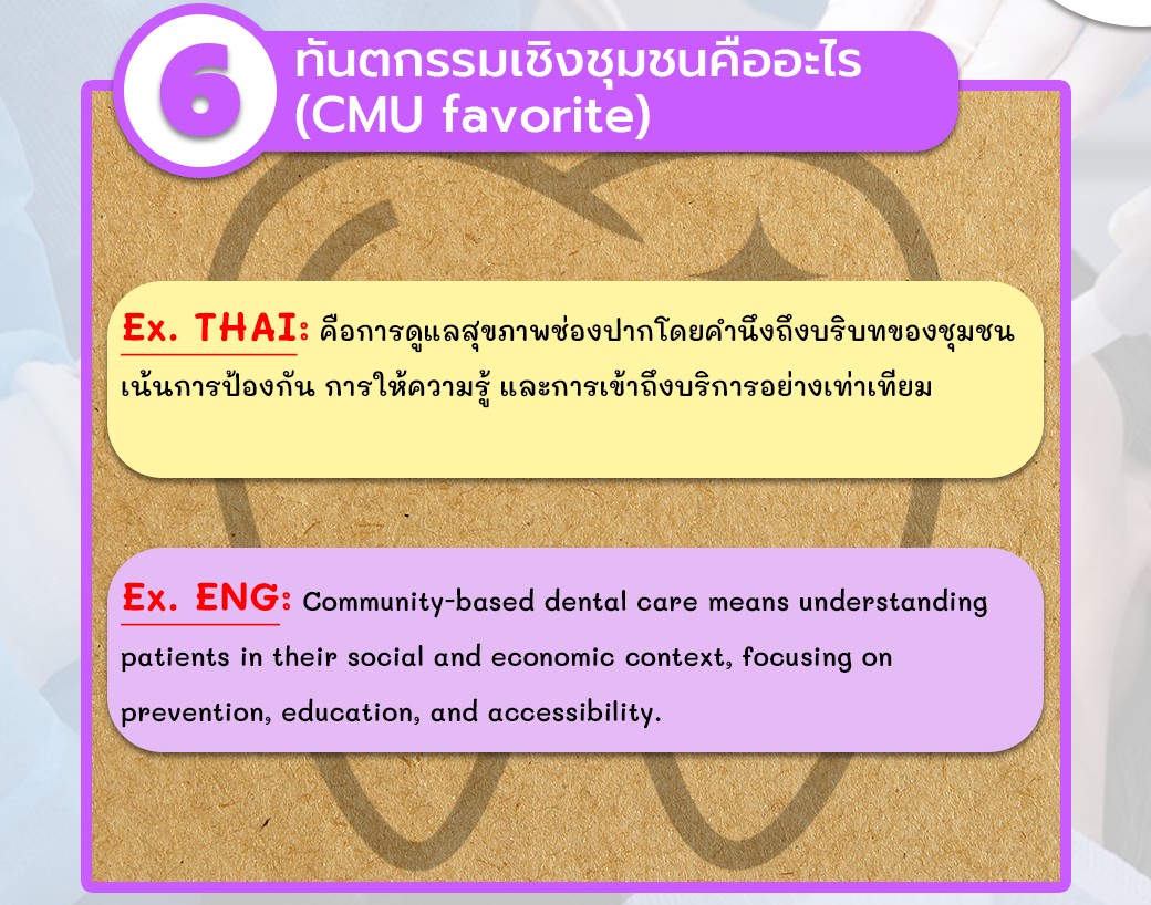 ไม่อยากพลาดประเด็นสำคัญที่กรรมการ มช. ชอบถาม โดยเฉพาะเรื่อง "ทันตกรรมเชิงชุมชน" ที่ต้องเน้นการป้องกันและการให้ความรู้