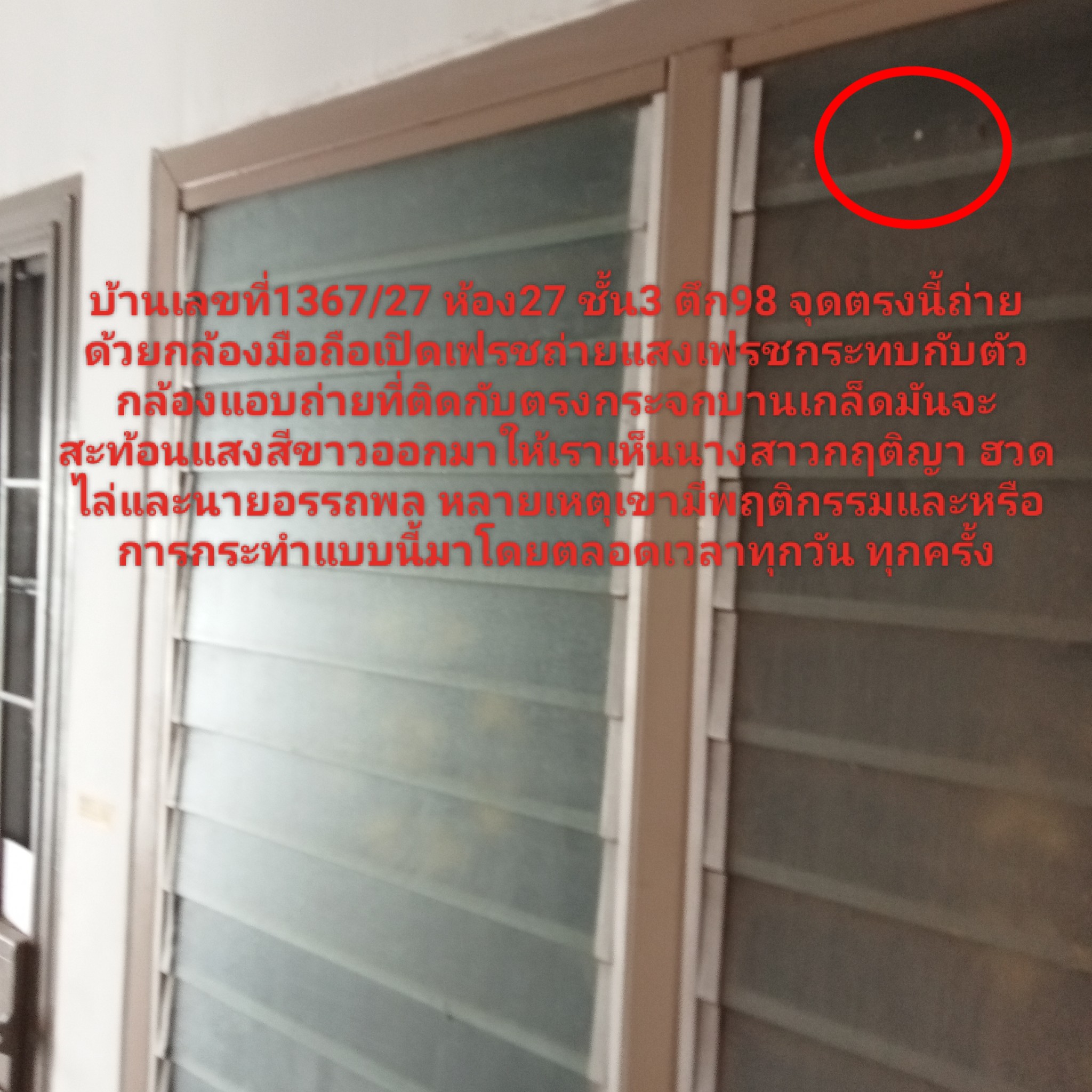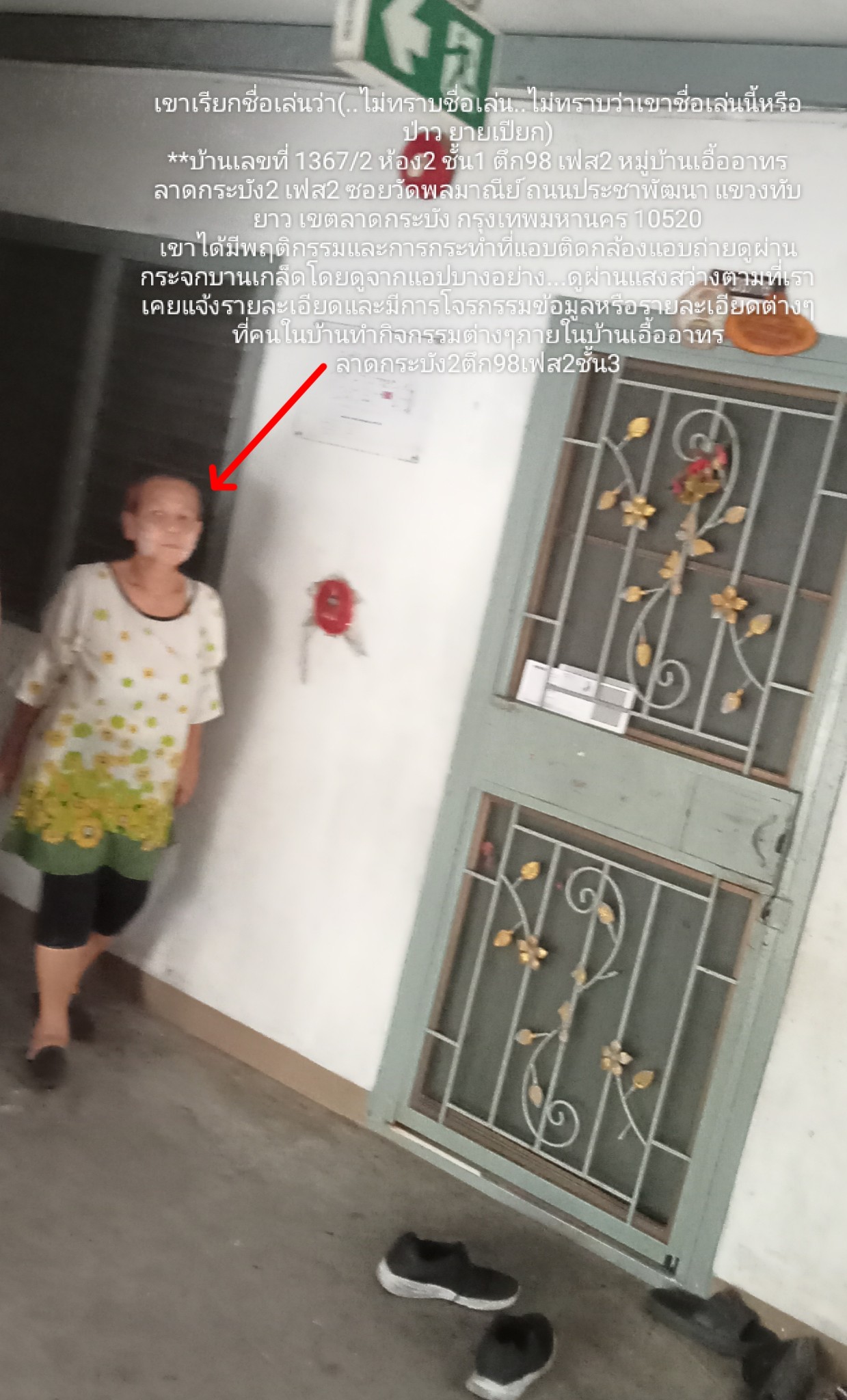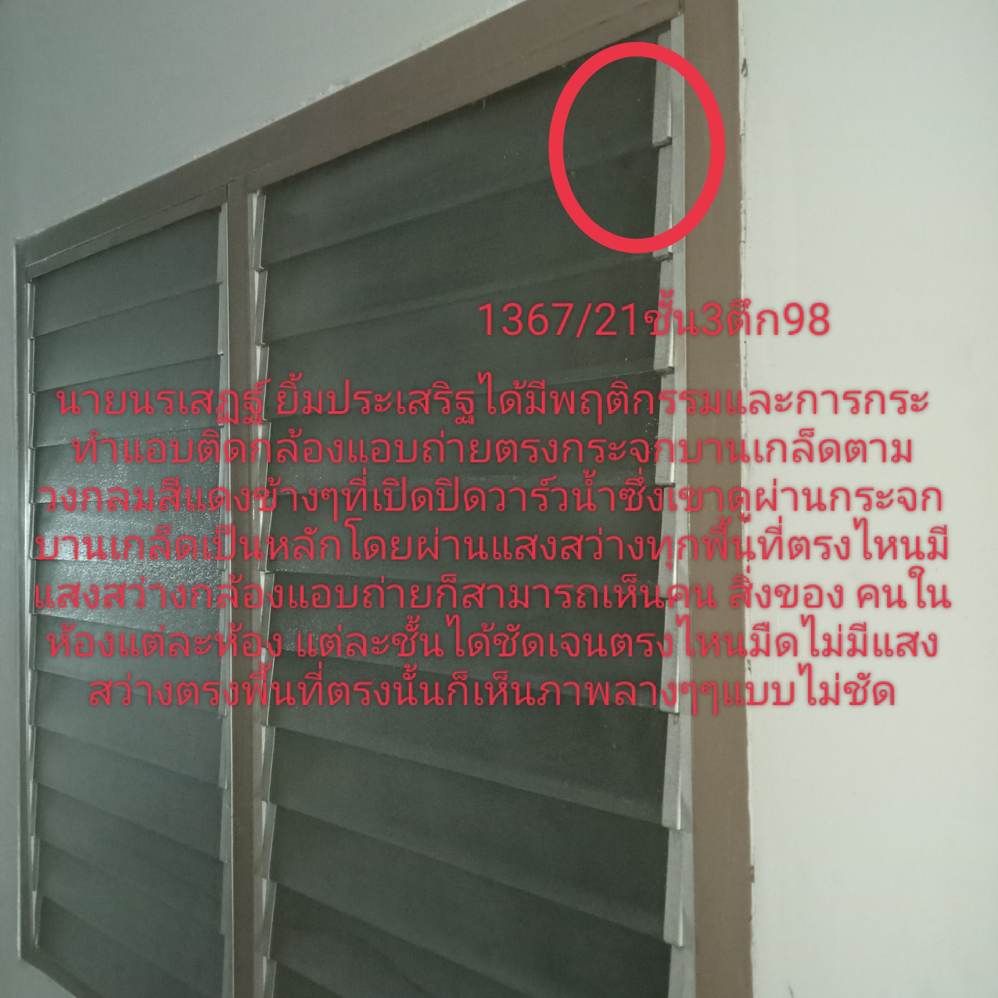 มันเป็นกล้องส่องแอบถ่ายโดยดูผ่านกระจกบานเกล็ดที่ห้อง1367/22 ห้อง22 ชั้น3 ตึก98 หมู่บ้านเอื้ออาทรลาดกระบัง2 เฟส2 เป็นมานาน4ปี 8เดือนเนื่องจากปี62-ปี66จนถึงปัจจุบันโดยประมาณซื่งเป็นเวลานานมากดูผ่านแสงสว่างให้กระทบกระจกบานเกล็ดก็จะเห็นคนในบ้านว่าทำกิจกรรมอะไรก็แล้วแต่เช่น อาบน้ำ กินข้าว เปลี่ยนเสื้อผ้าอื่นๆหรือทำกิจกรรมแต่ละวันต่างๆภายในห้องของเจ้าของบ้านเป็นประจำทุกวัน ทุกคืน ถ้าตรงไหนมีแสงสว่างน้อยก็จะเห็นไม่ชัด ถ้าตรงไหนพื้นที่ไหนมีแสงสว่างมากก็เห็นชัด ถ้าตรงไหนพื้นที่มืดก็เห็นแบบมัวไม่ชัดเป็นแบบนี้มาโดยตลอดเวลาทุกวัน ทุกคืน จนถึงปัจจุบันนี้ซึ่งแต่ละชั้น แต่ละห้องทุกชั้นก็มีกระจกบานเกล็ดทุกห้องตึก 5 ชั้น ชั้นละ7-8ห้องเป็นอันตรายมากๆๆสำหรับลูกบ้านเอื้ออาทรลาดกระบัง2 เฟส2 หรือทุกเฟสซึ่งห้อง1367/21 ห้อง21,ห้อง1367/27 ห้อง27 ชั้น3 ตึก98 เฟส2 มันมีพฤติกรรมและการกระทำแบบนี้กับห้อง1367/22 ห้อง22 ชั้น3 ตึก98ได้ห้องอื่นๆๆมันก็สามารถทำได้เหมือนกันซึ่งเป็นบุคคลอันตรายแก่หมู่บ้านเอื้ออาทรลาดกระบัง2 เฟส2และสังคมอย่าปล่อยคนชั่วแบบนี้ให้อยู่ในสังคมไทย.....