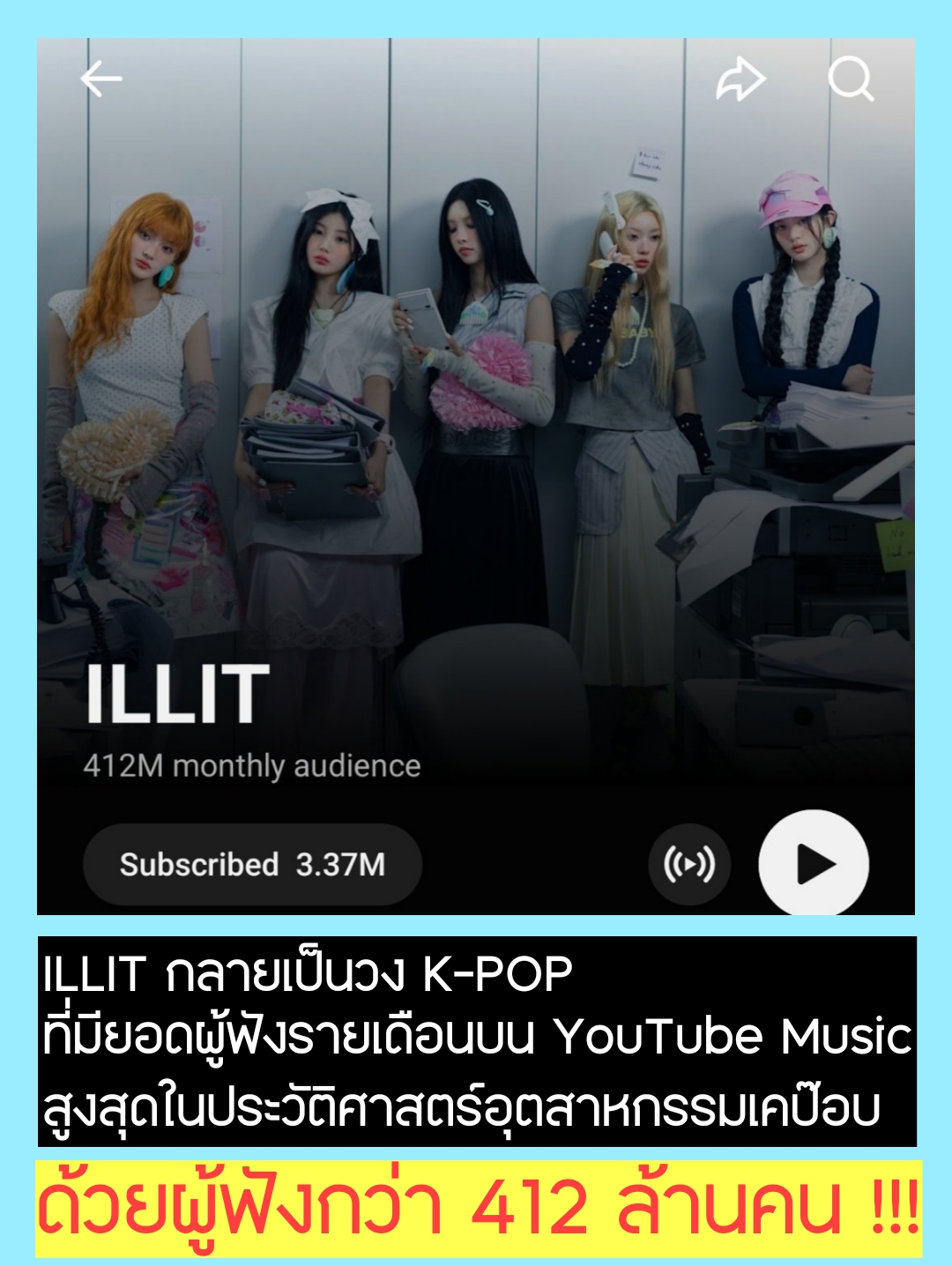 ILLIT กลายเป็นวง K-POP ที่มียอดผู้ฟังรายเดือนบน YouTube Music สูงสุดในประวัติศาสตร์ของอุตสากรรมเคป๊อบ (แบบไม่แยกเจนด้วย)
